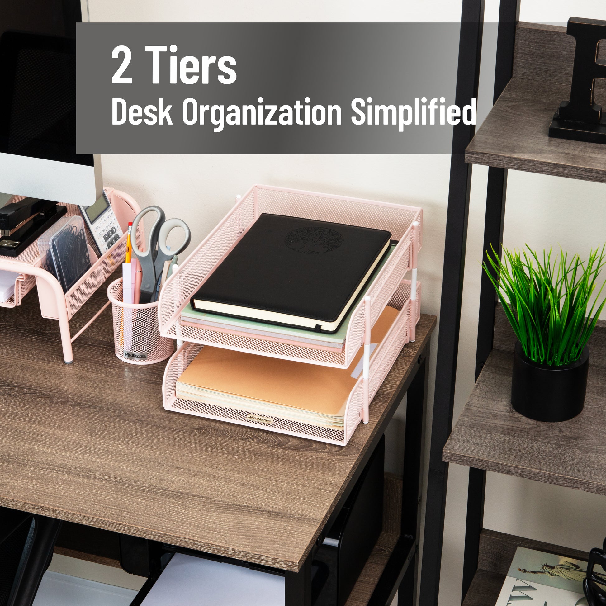 - Space-saving design: The two tiers stack together, which saves you valuable desktop space and allows you to organize more efficiently