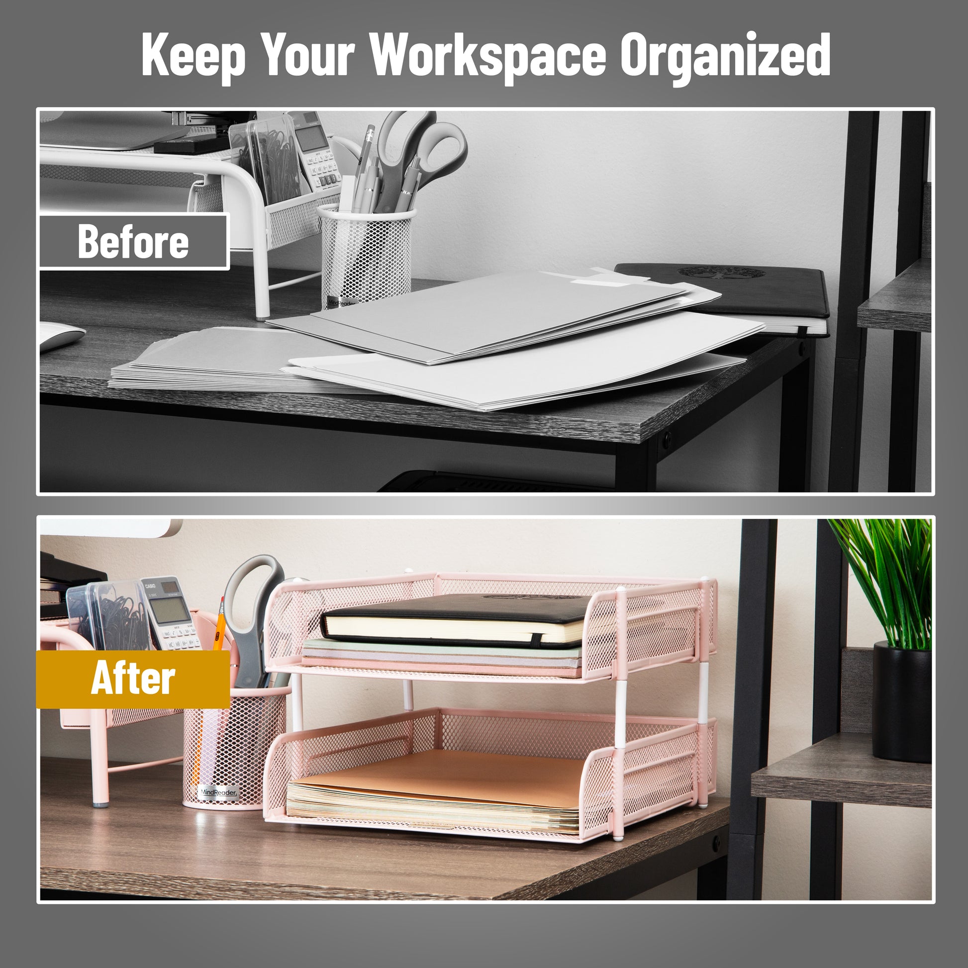 - Versatile organizer: Use the storage trays to save space and store multiple items on your desktops, such as files, folders, magazines, mail, and more