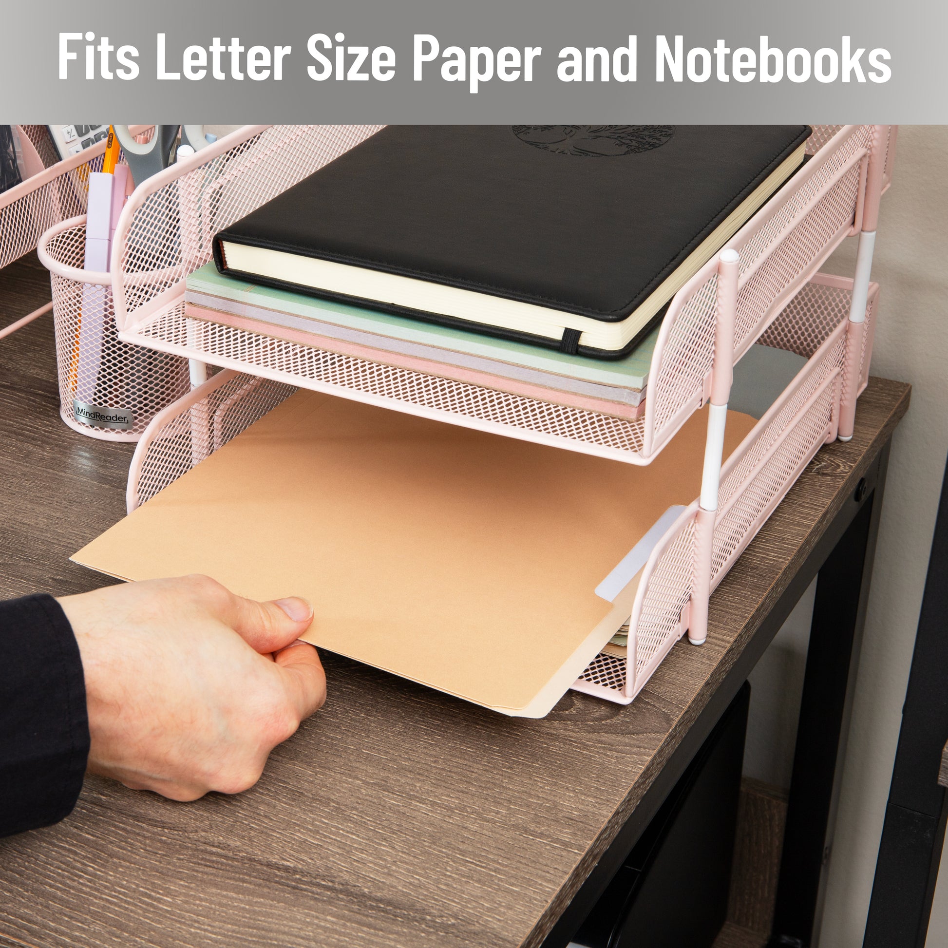 - Accessible: The modern, metal mesh design of this desktop organizer lets you see files and folders so you can easily retrieve them