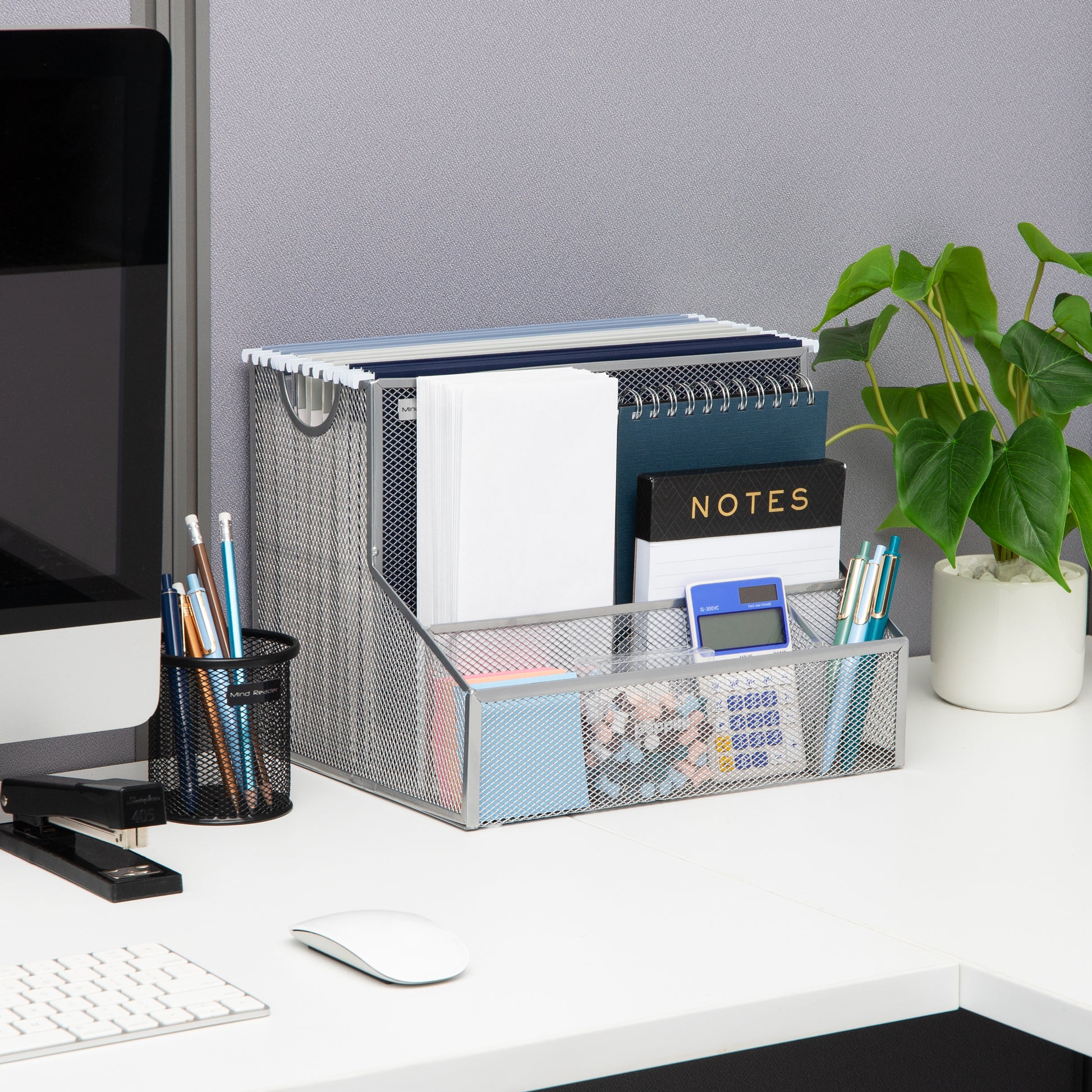 Streamline your life with this ready-to-use 4-compartment desktop and countertop organizer. Designed to hold important letter- and A4-sized paper in hanging file folders in the large compartment at the back, and mail or miscellaneous items in the smaller compartments in the front. Save space and keep everything centrally located for easy access.