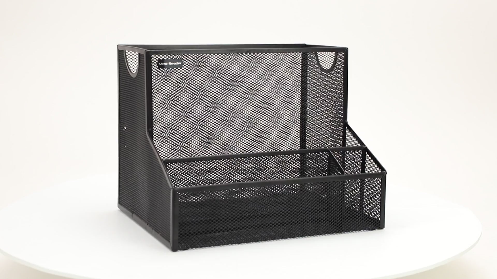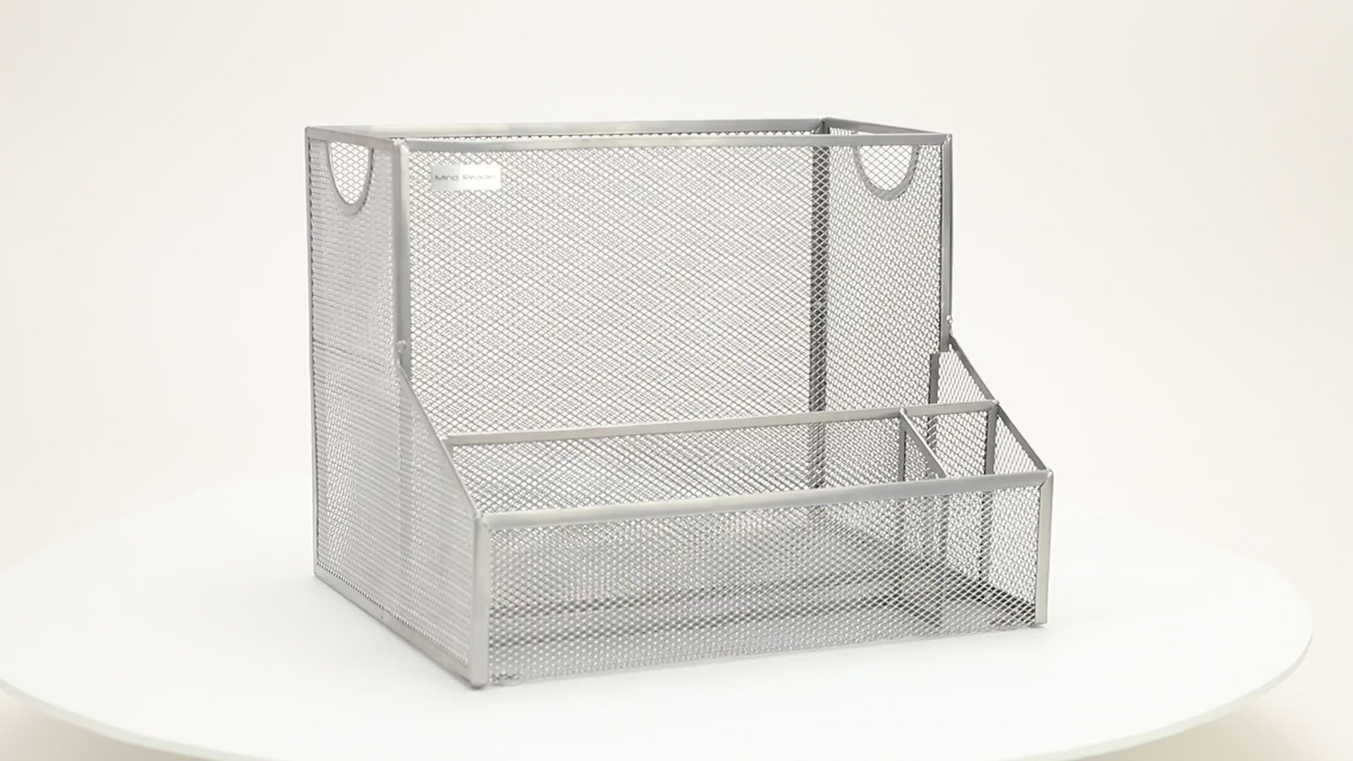 - Simple yet functional design: This metal mesh organizer has simple straight lines, a compact footprint yet ample and versatile storage compartments