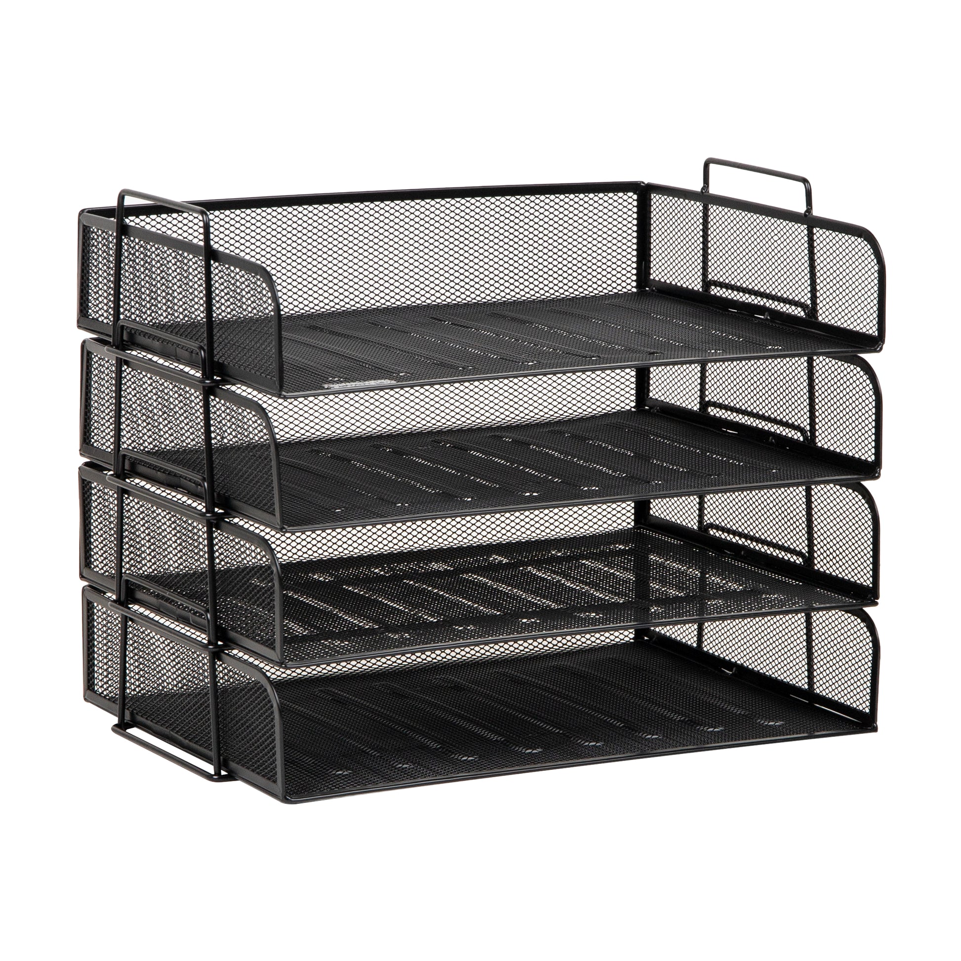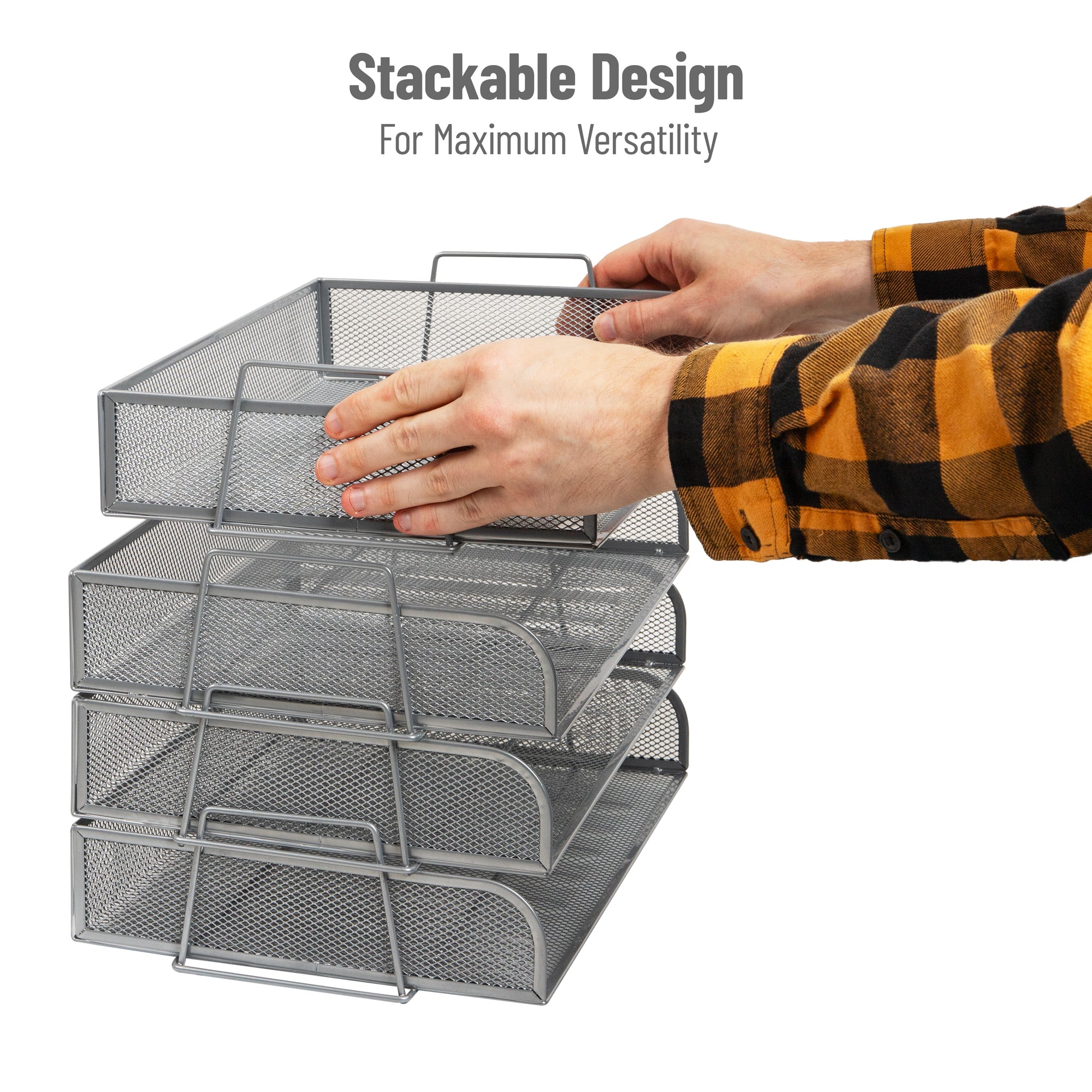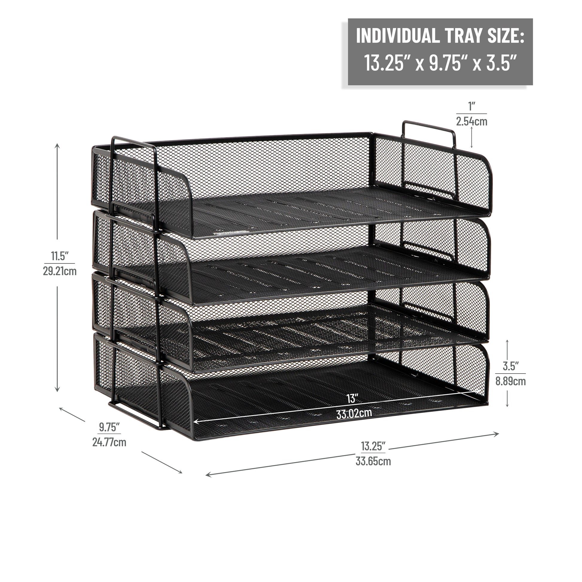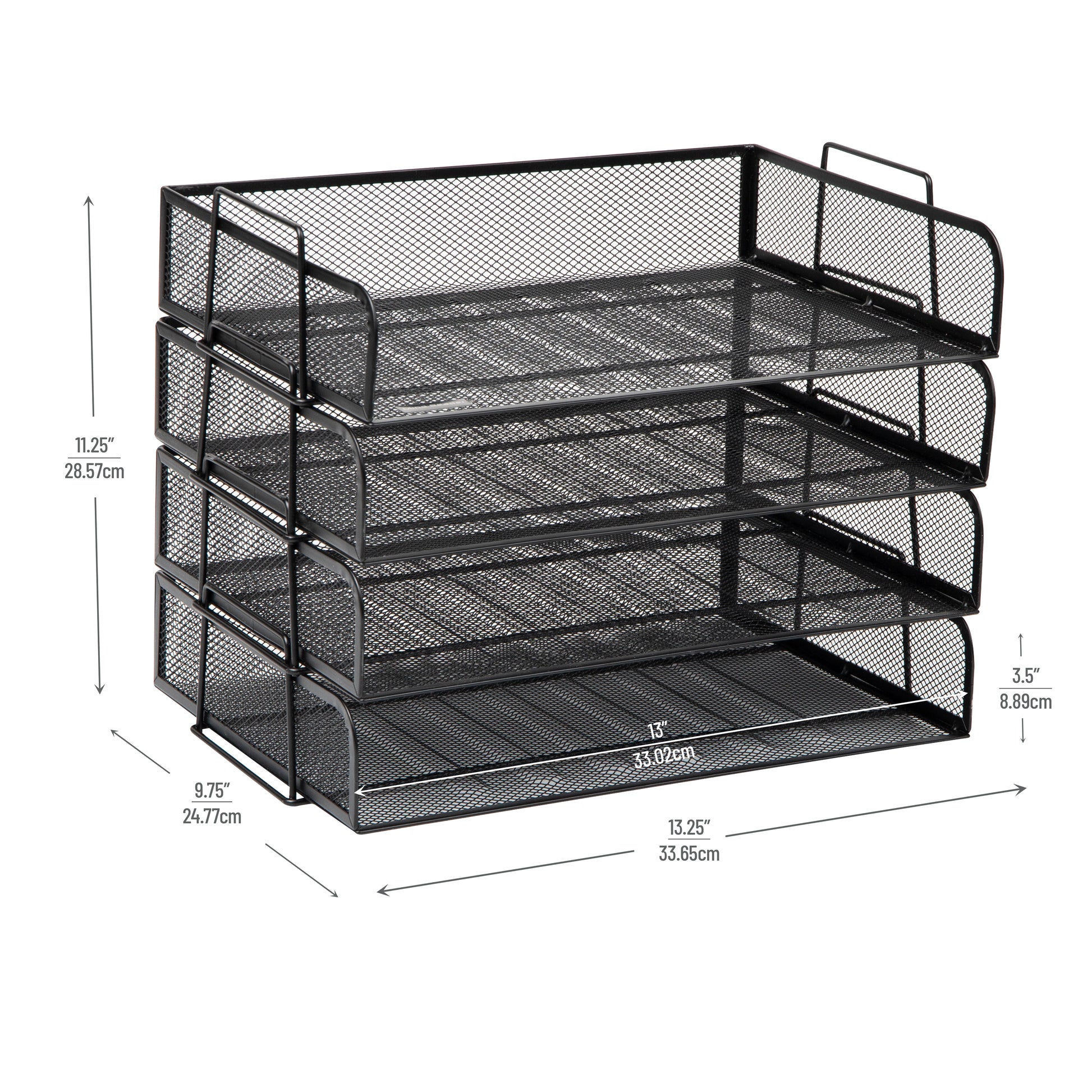 Mind Reader Stackable Paper Tray, Desktop Organizer, File Storage, Office, Metal Mesh, 13.25"L x 9.75"W x 11.25"H, 4 Pcs.