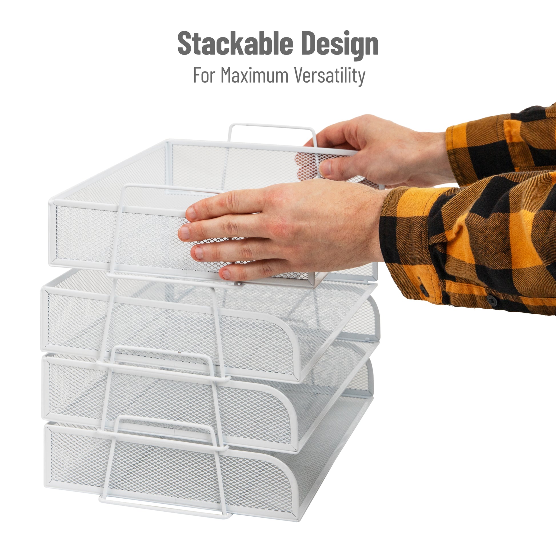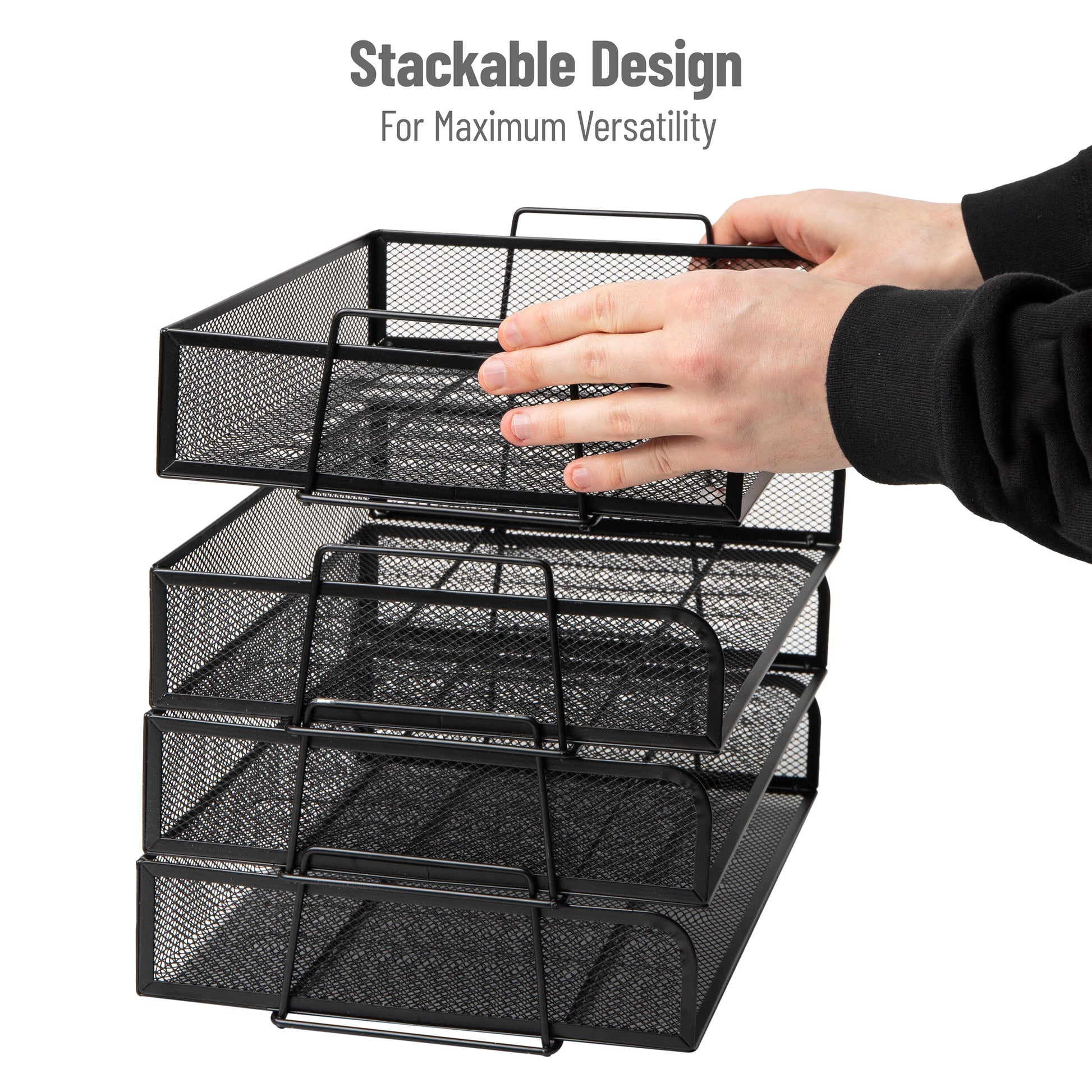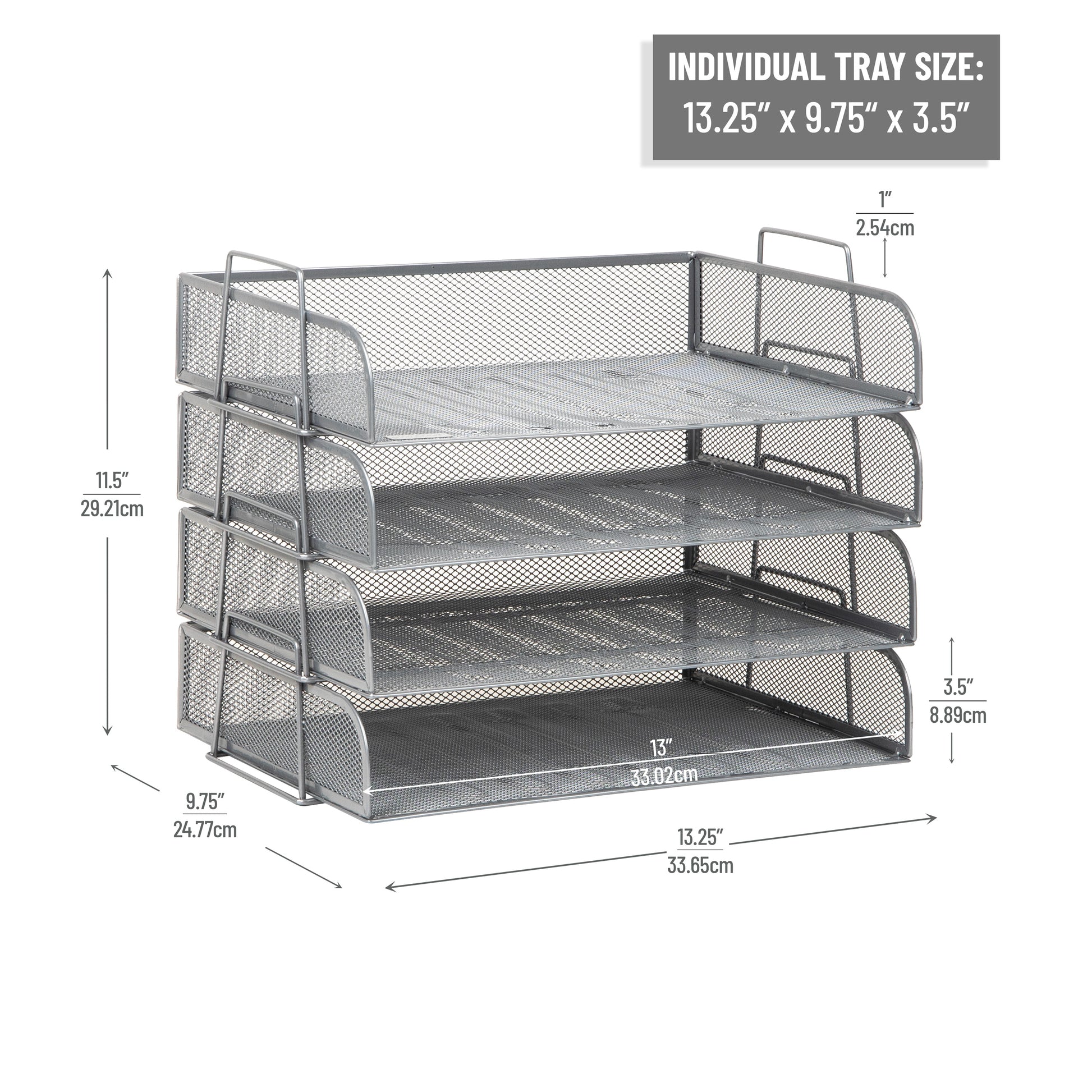 Mind Reader Stackable Paper Tray, Desktop Organizer, File Storage, Office, Metal Mesh, 13.25"L x 9.75"W x 11.25"H, 4 Pcs.