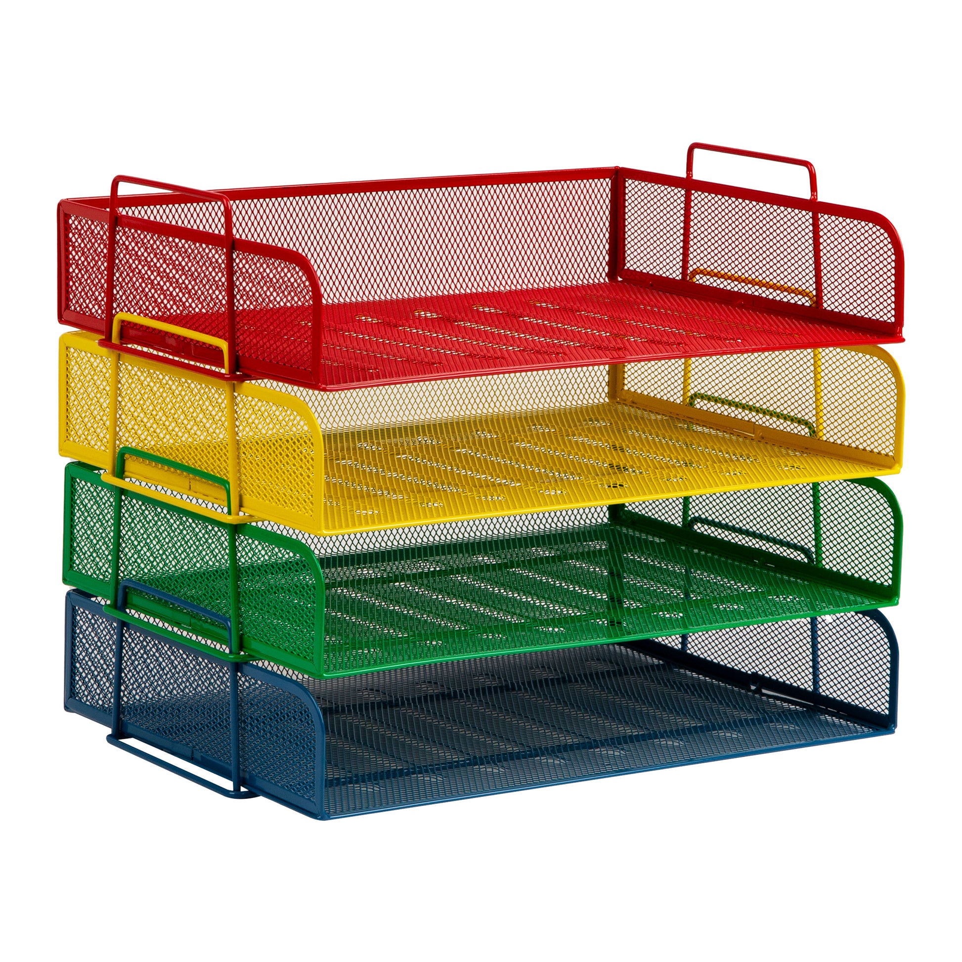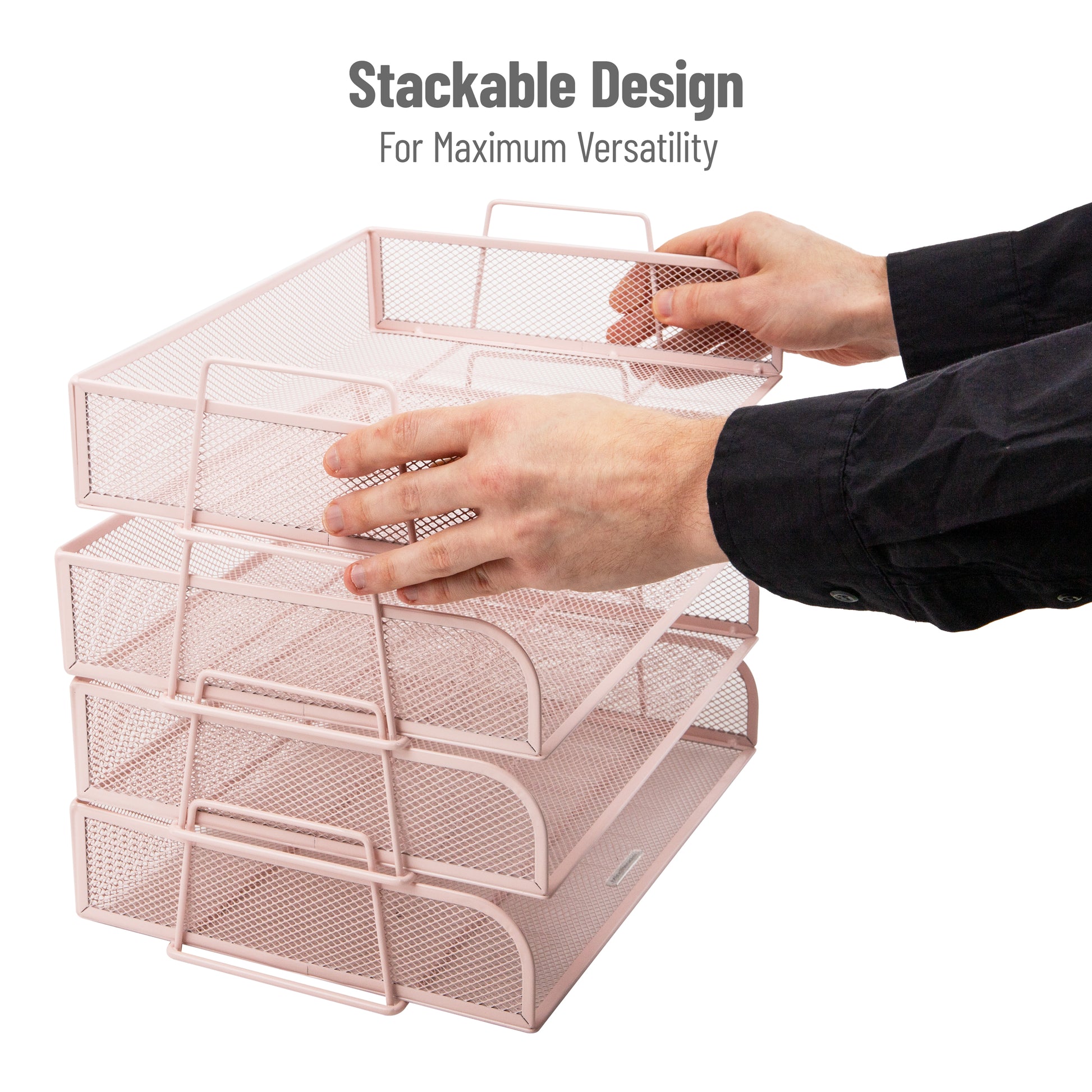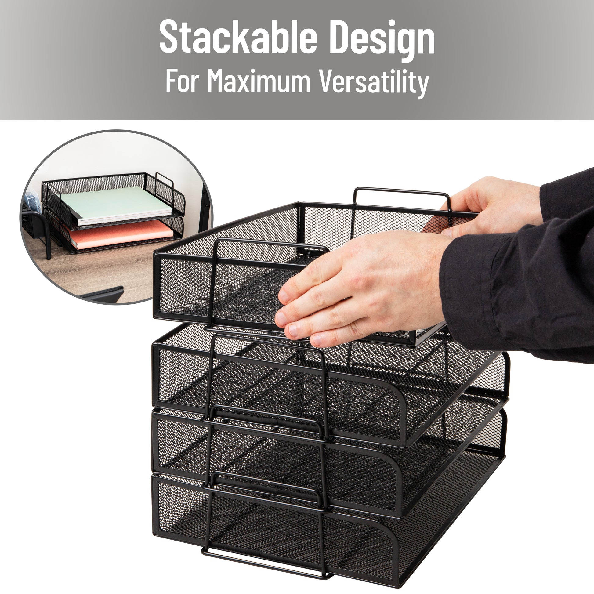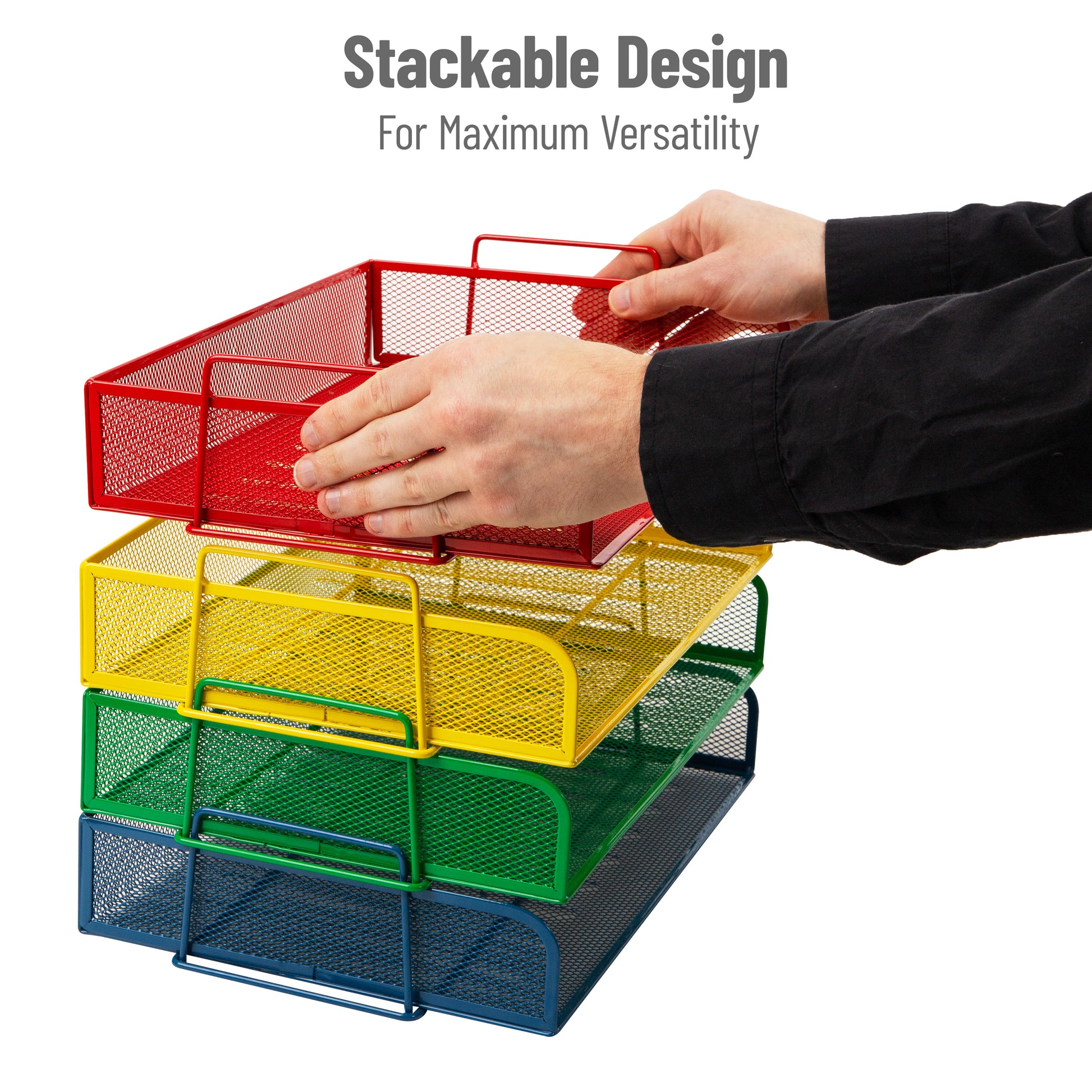 Mind Reader Stackable Paper Tray, Desktop Organizer, File Storage, Office, Metal Mesh, 13.25"L x 9.75"W x 11.25"H, 4 Pcs.