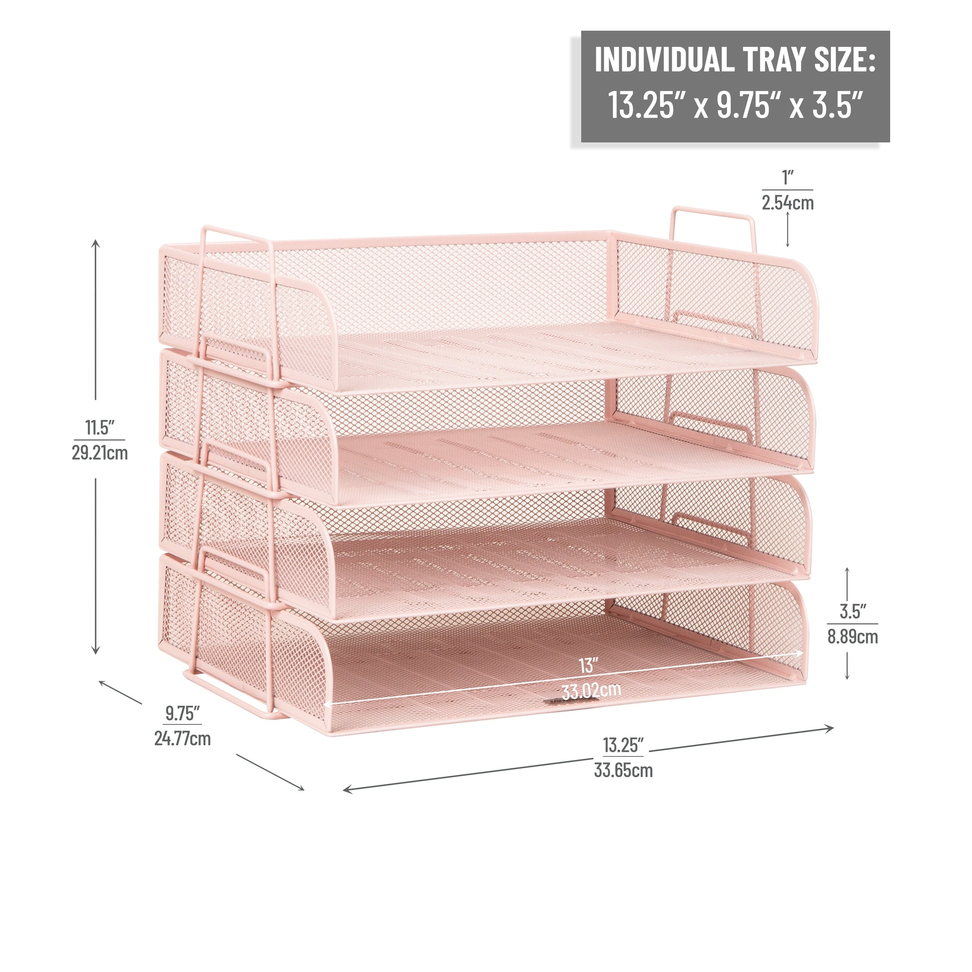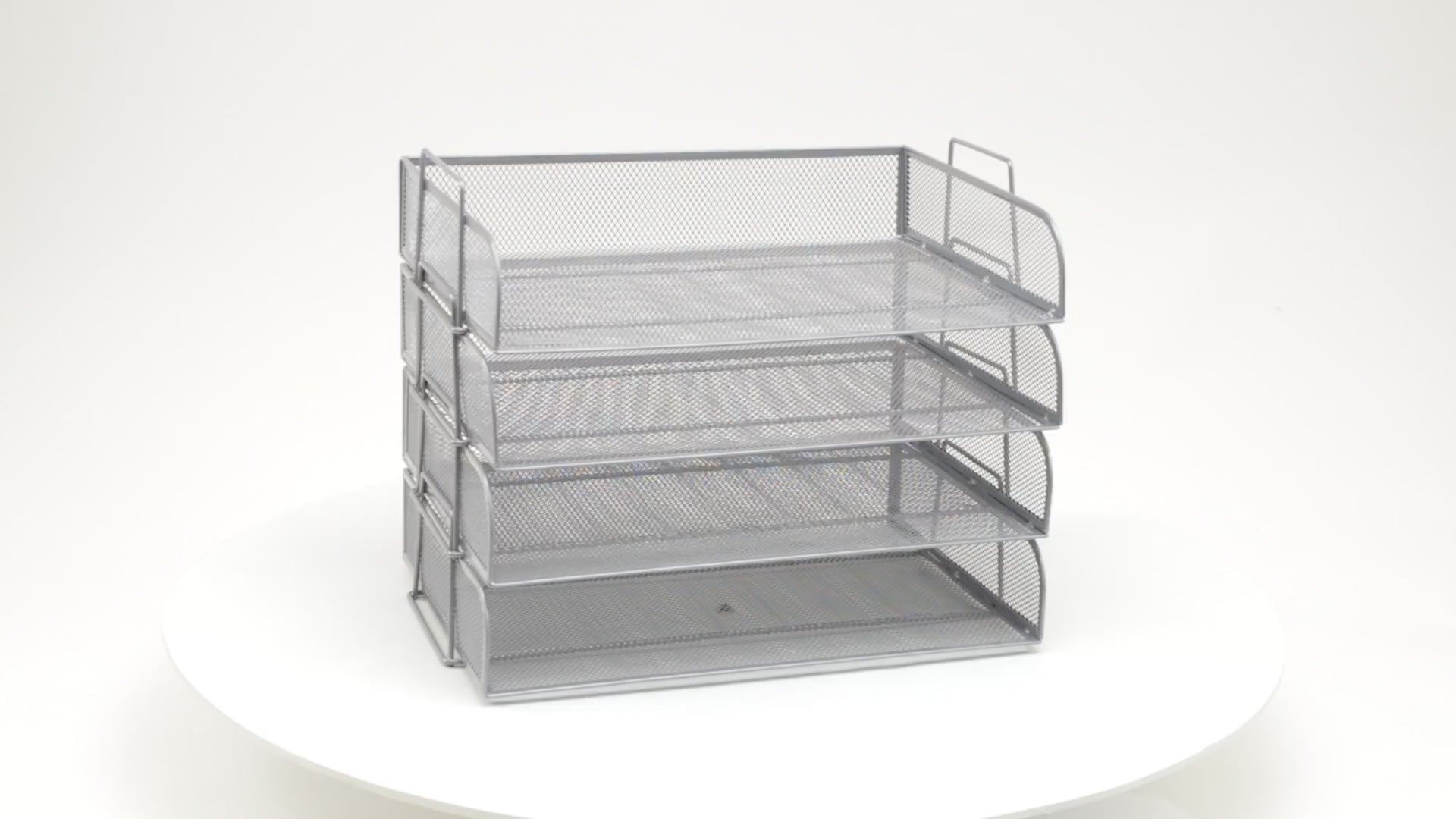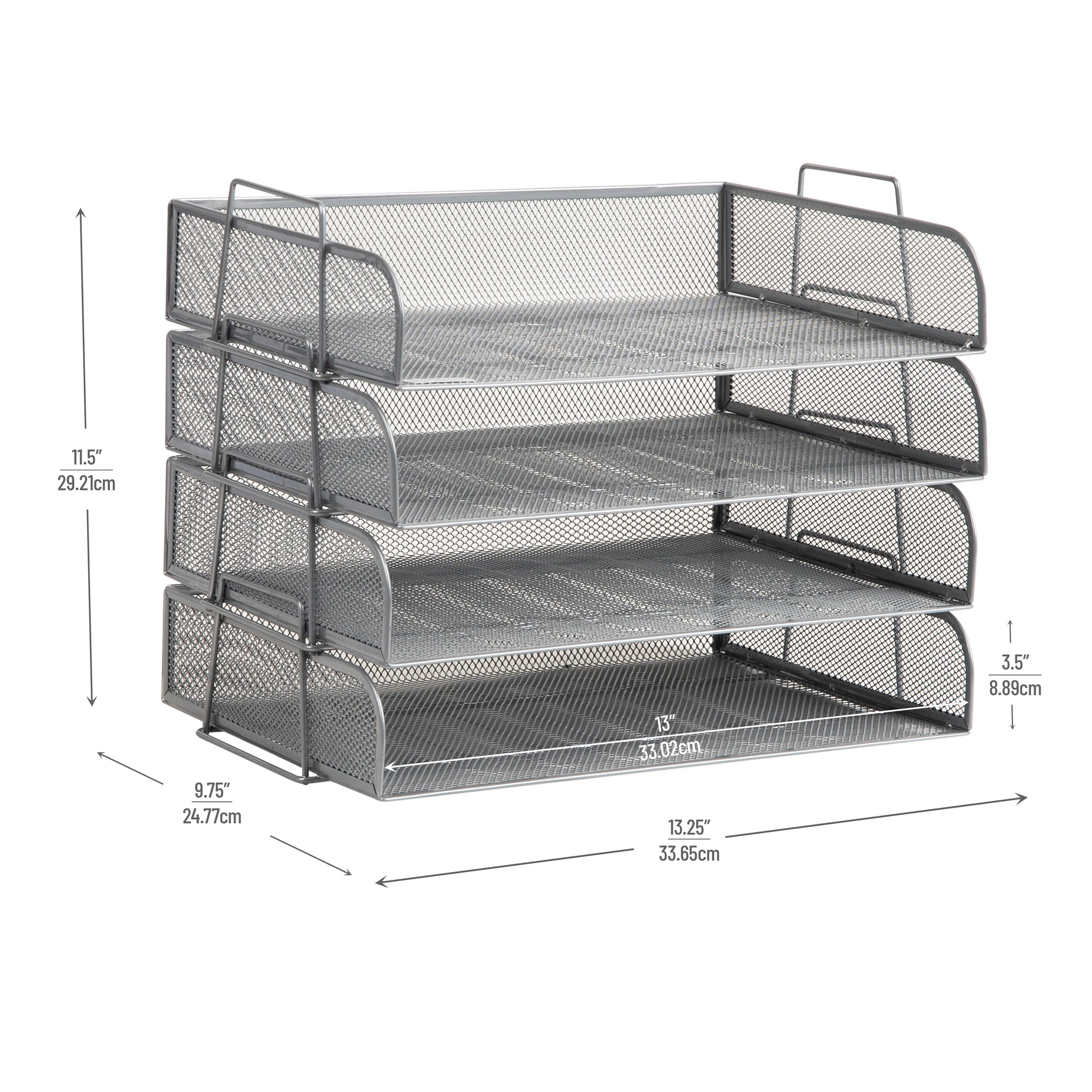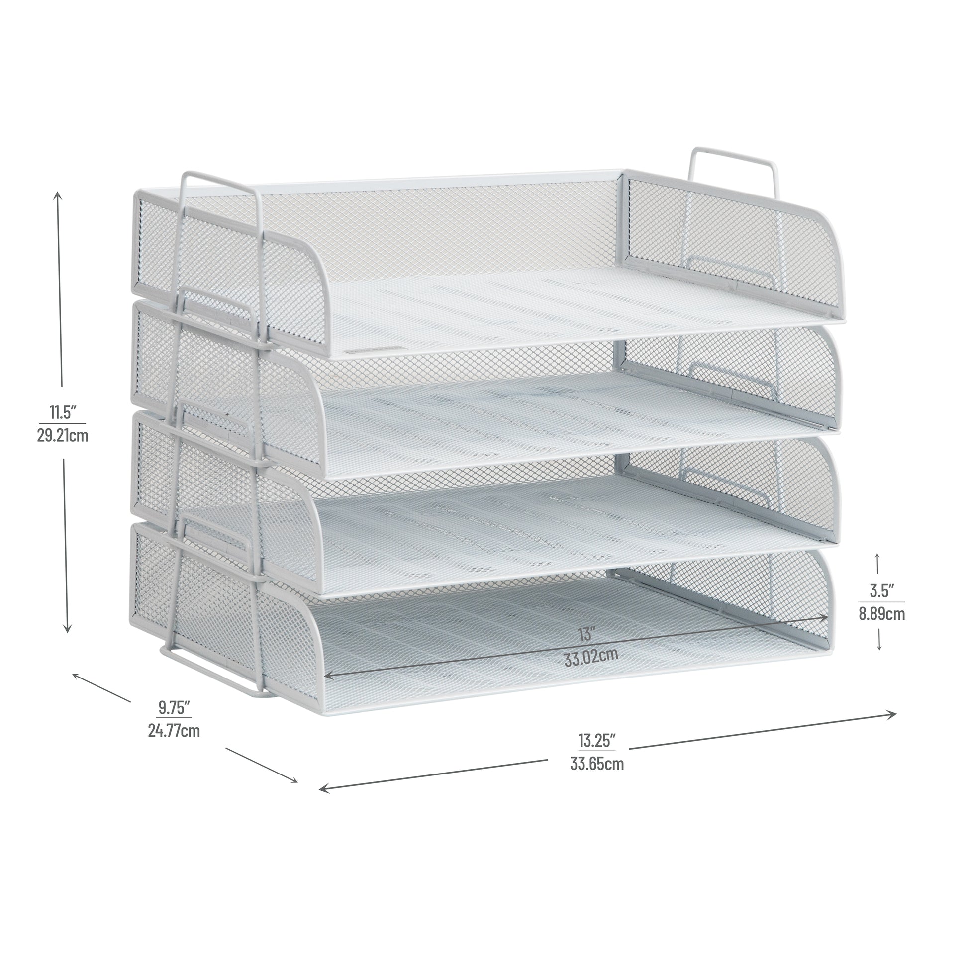 Crafted from sturdy mesh metal, this organizer is built to withstand daily use. Its neutral color blends effortlessly with any decor. For a coordinated look, pair it with other pieces from the Network Collection. This four-tier organizer makes a fantastic gift for colleagues, graduates, new homeowners, or anyone seeking a stylish and practical solution to declutter their workspace.