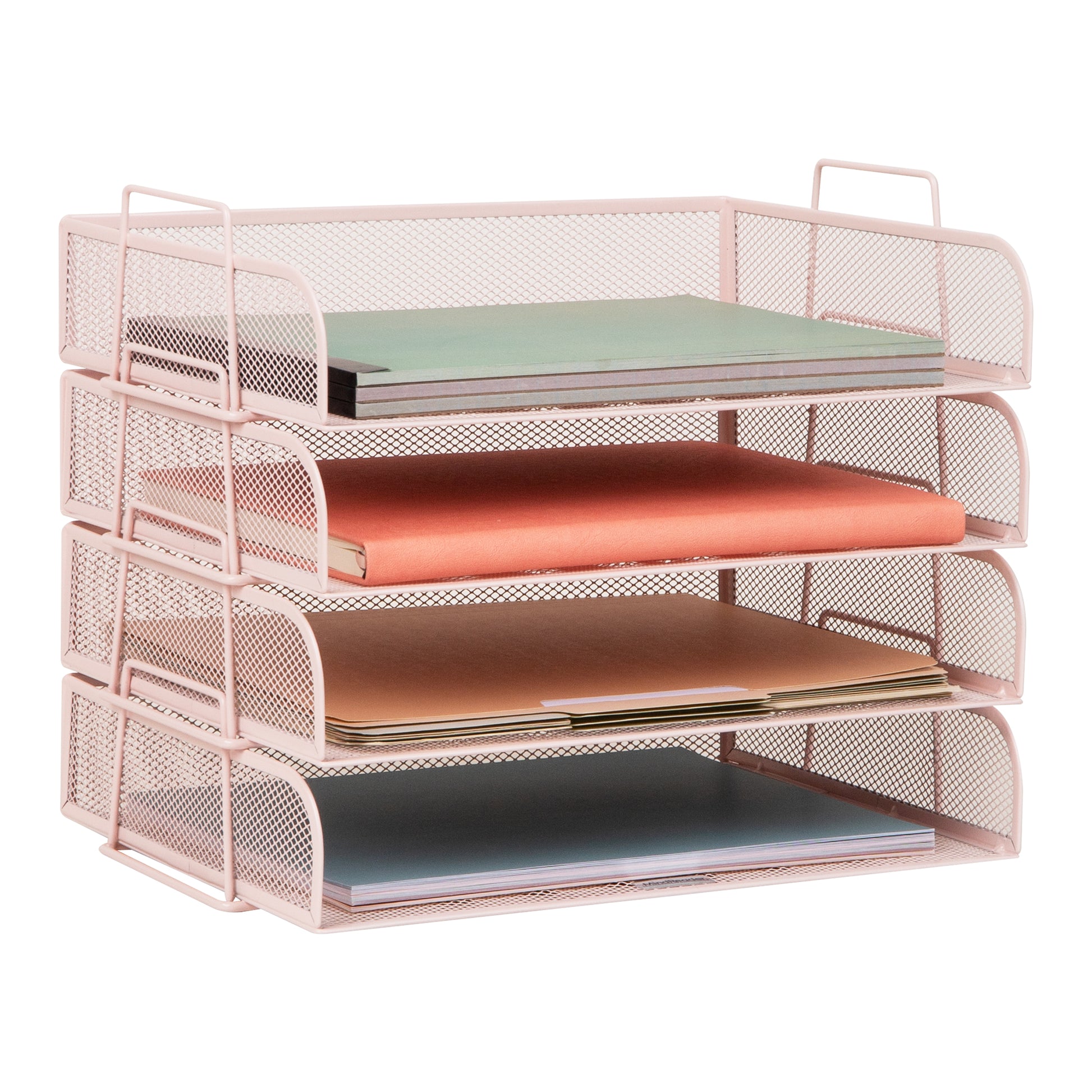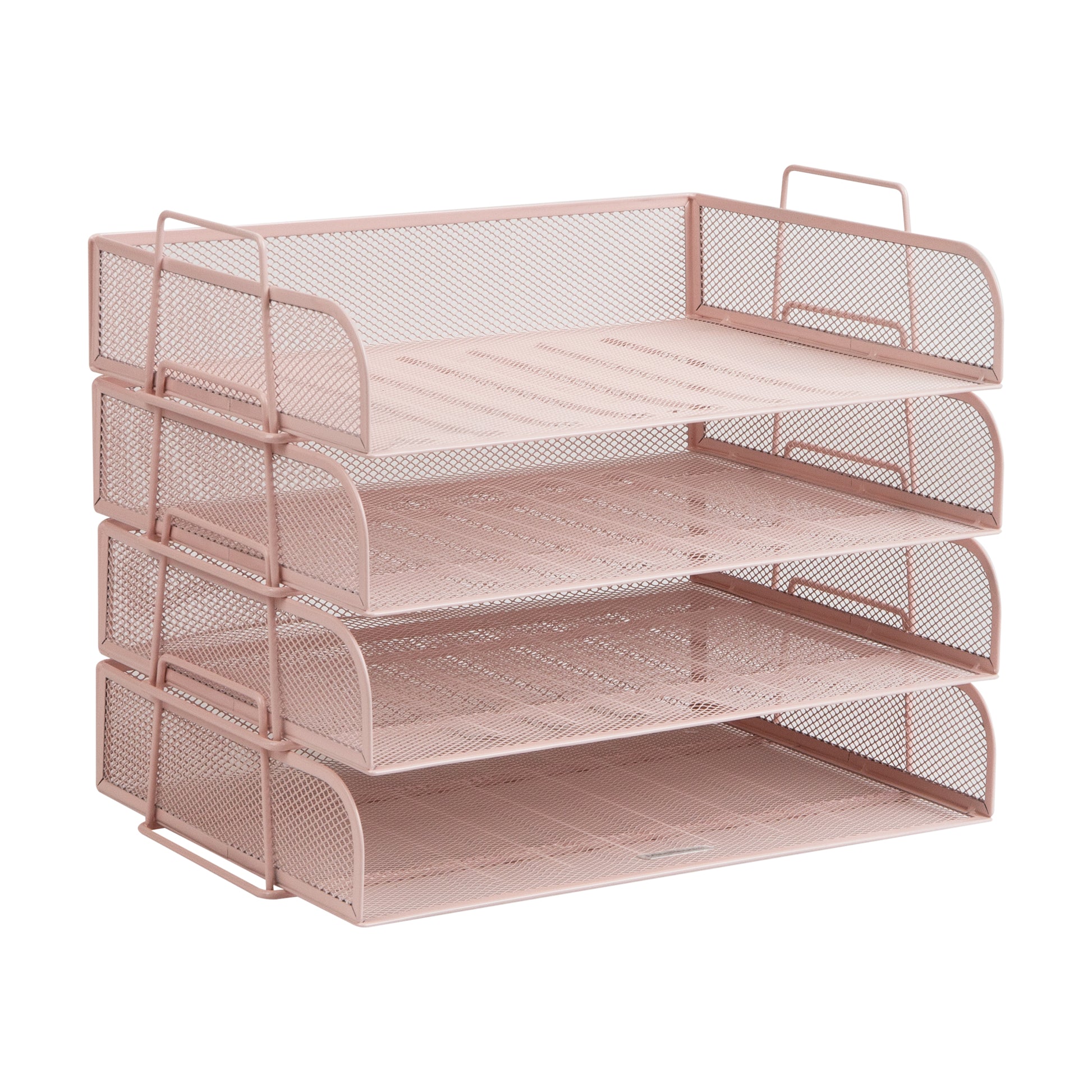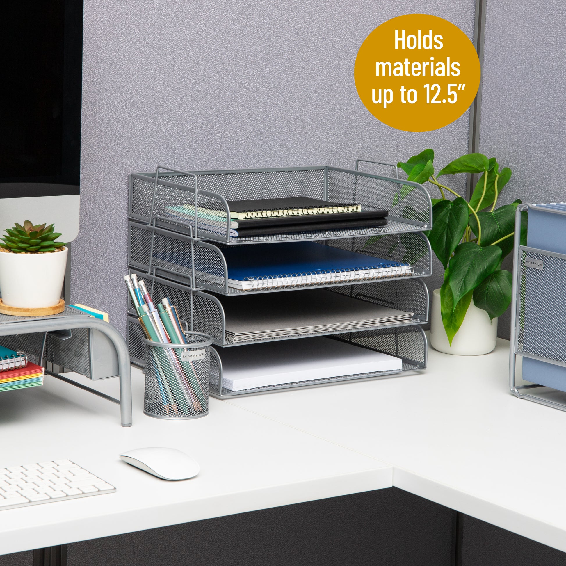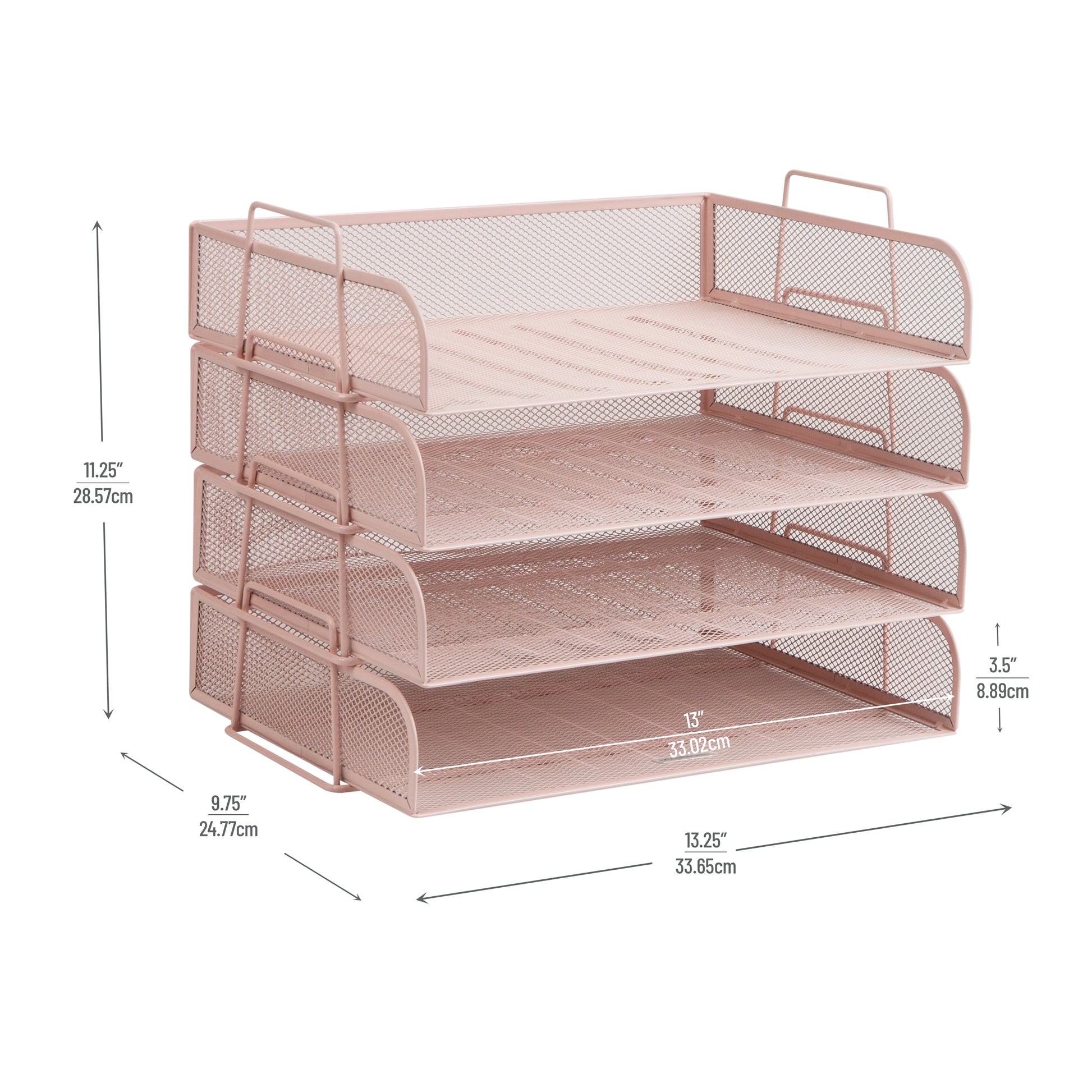 Crafted from sturdy mesh metal, this organizer is built to withstand daily use. Its neutral color blends effortlessly with any decor. For a coordinated look, pair it with other pieces from the Network Collection. This four-tier organizer makes a fantastic gift for colleagues, graduates, new homeowners, or anyone seeking a stylish and practical solution to declutter their workspace.