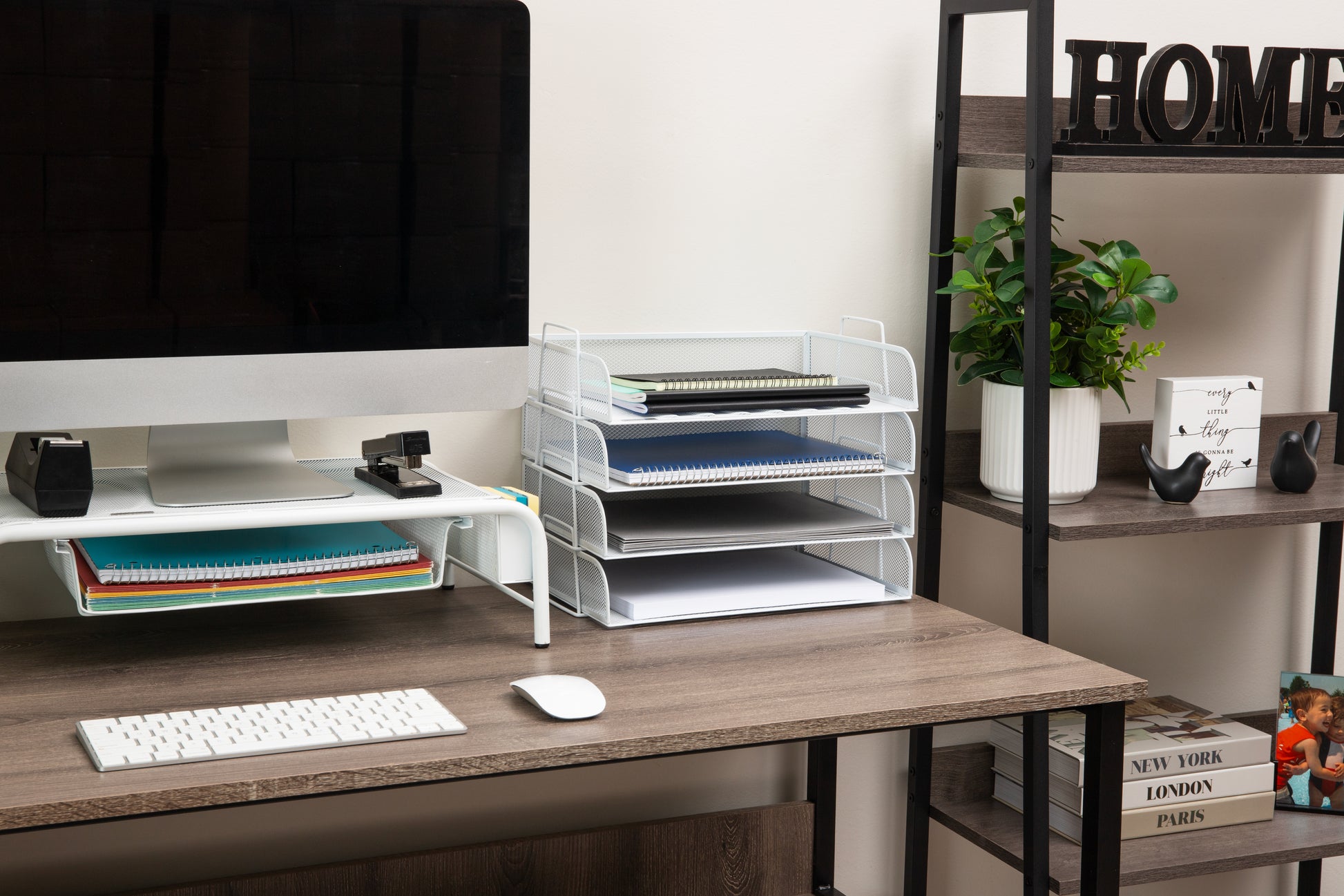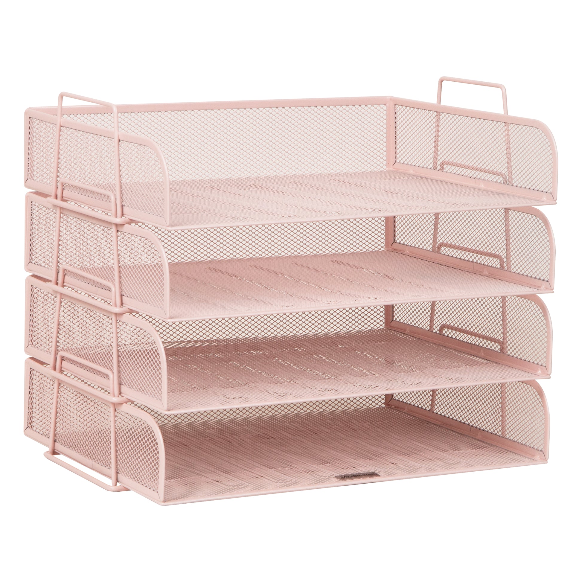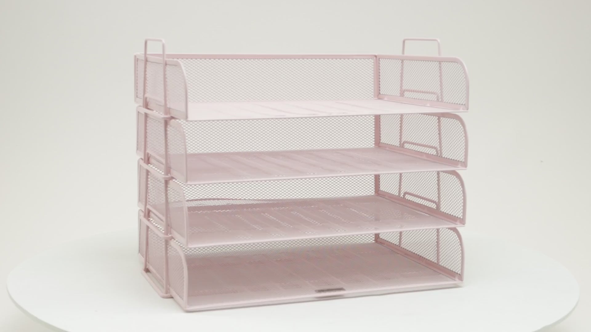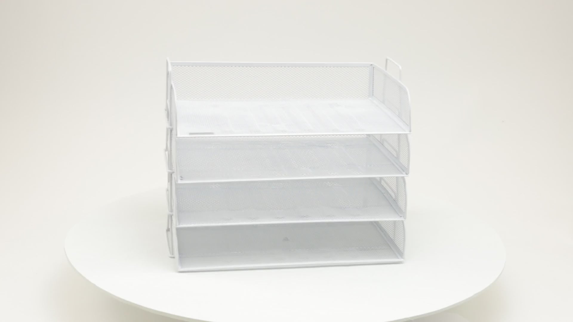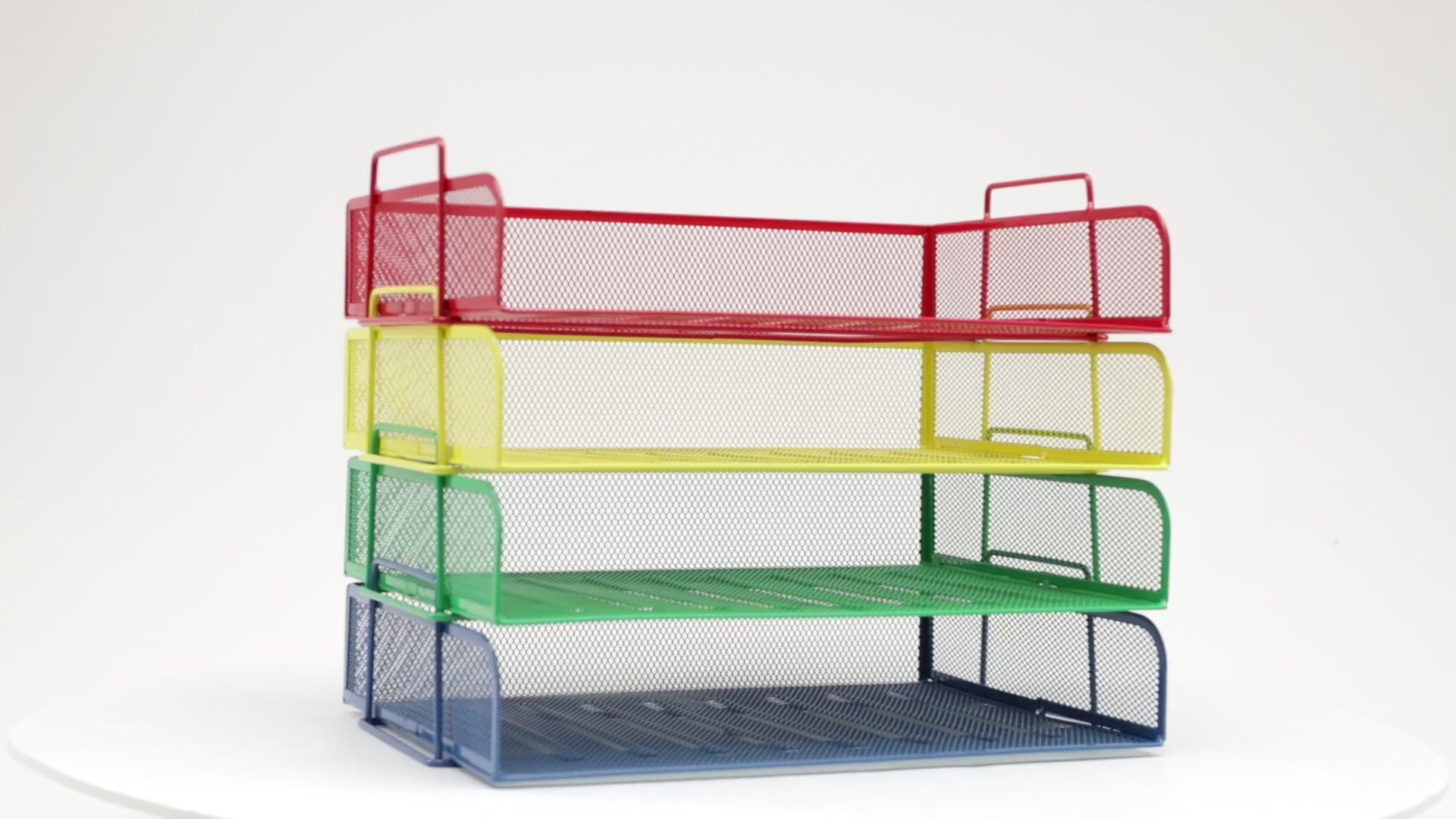 Crafted from sturdy mesh metal, this organizer is built to withstand daily use. Its neutral color blends effortlessly with any decor. For a coordinated look, pair it with other pieces from the Network Collection. This four-tier organizer makes a fantastic gift for colleagues, graduates, new homeowners, or anyone seeking a stylish and practical solution to declutter their workspace.