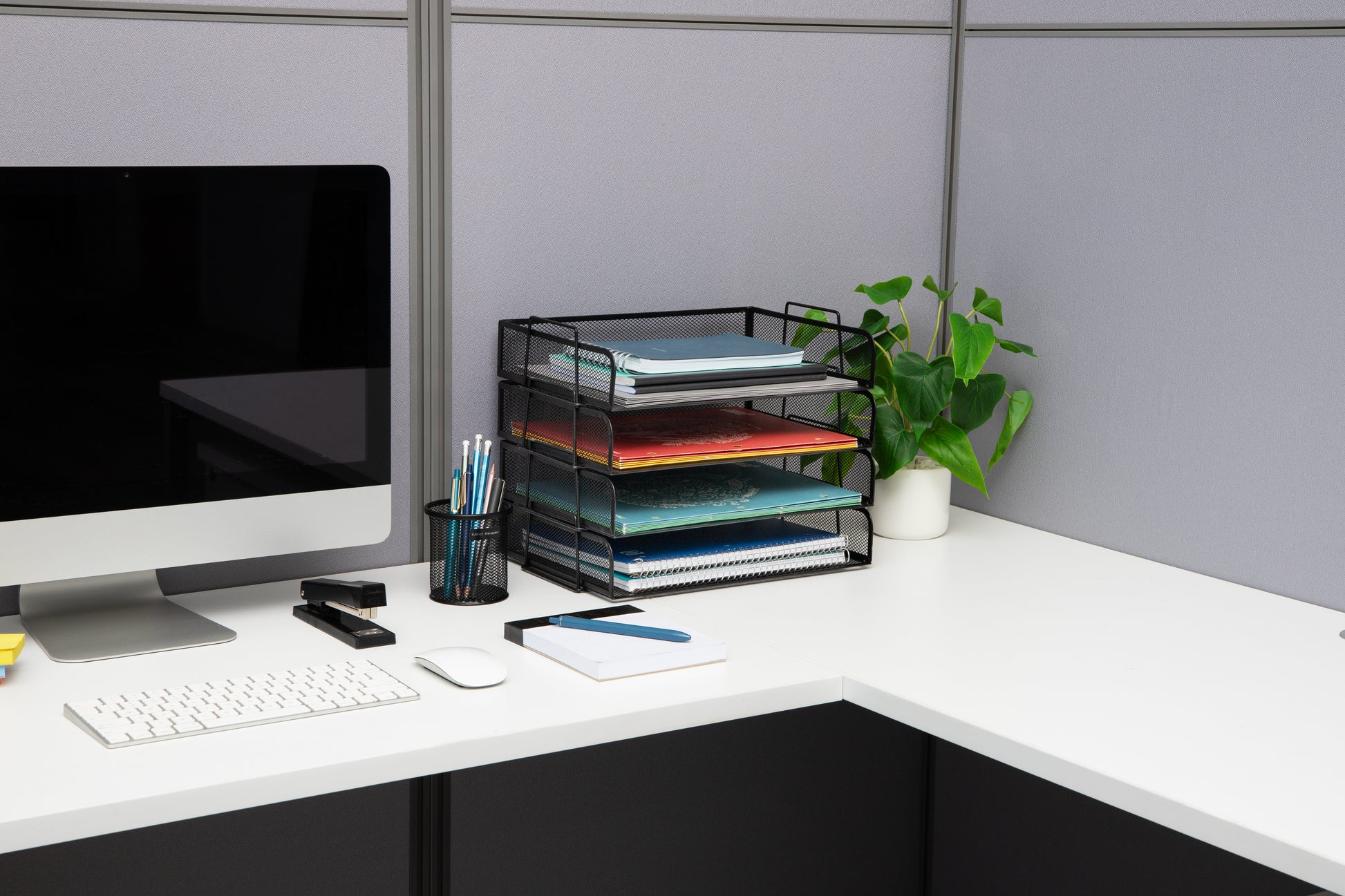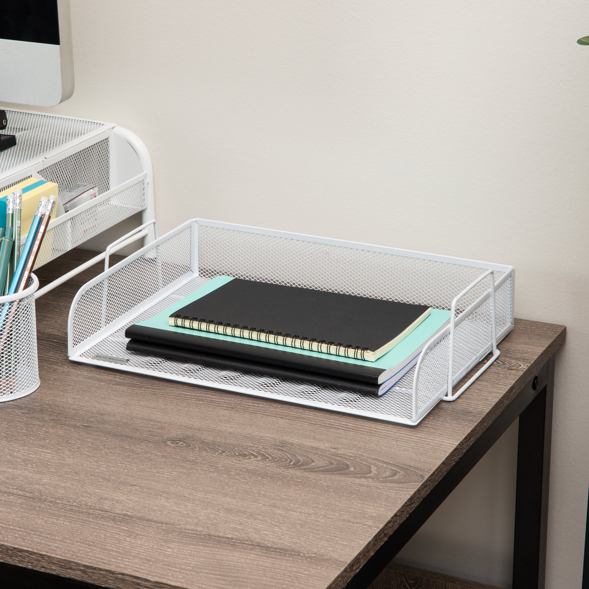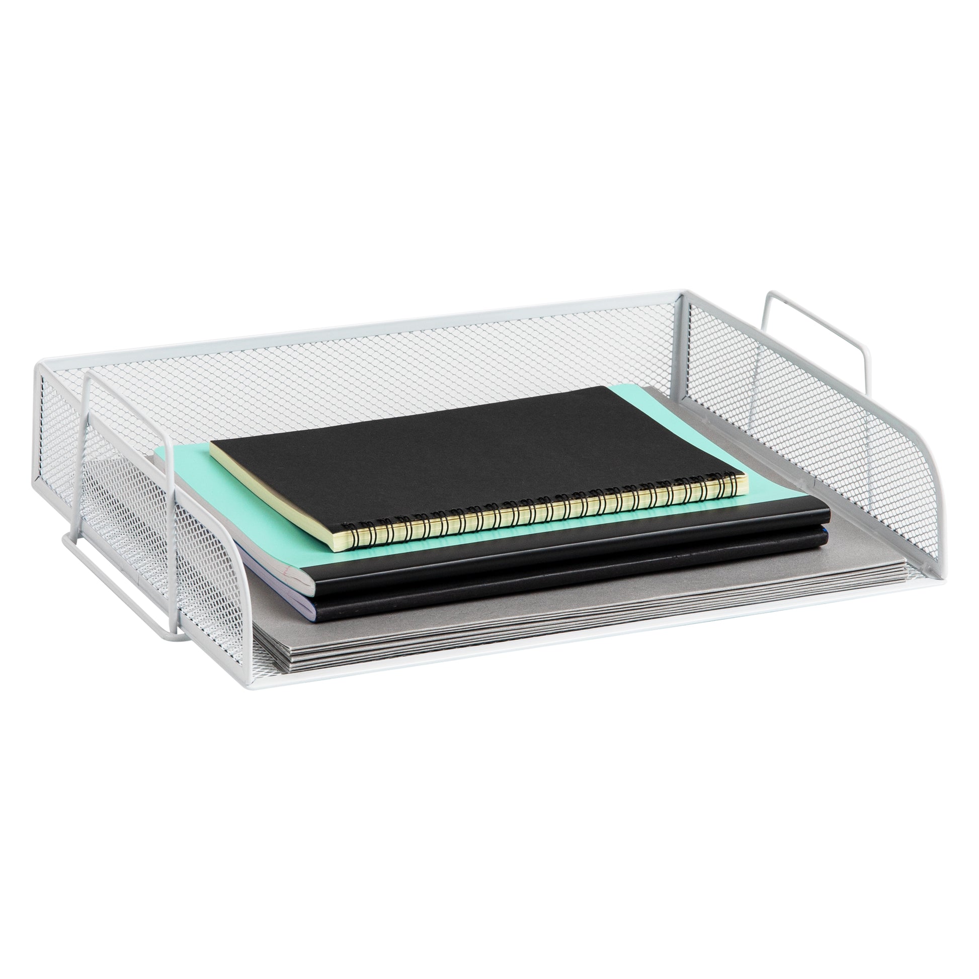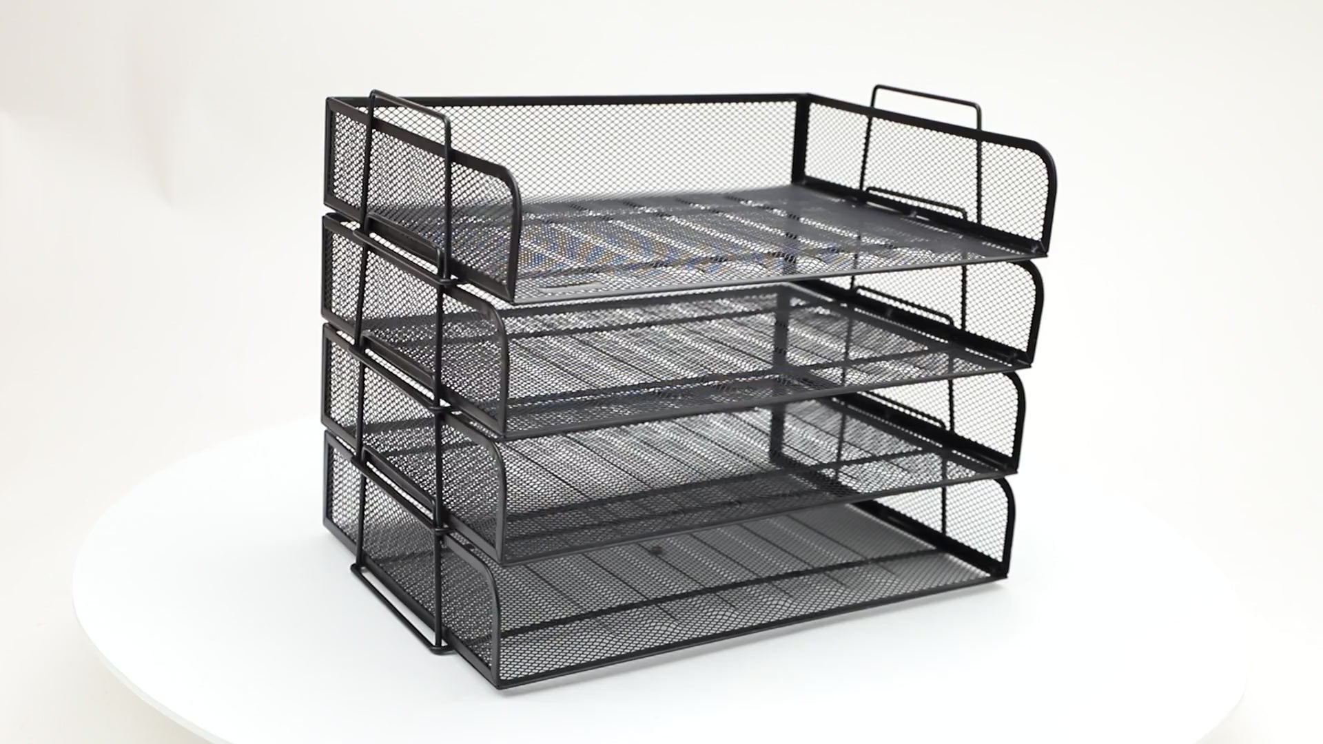 Crafted from sturdy mesh metal, this organizer is built to withstand daily use. Its neutral color blends effortlessly with any decor. For a coordinated look, pair it with other pieces from the Network Collection. This four-tier organizer makes a fantastic gift for colleagues, graduates, new homeowners, or anyone seeking a stylish and practical solution to declutter their workspace.