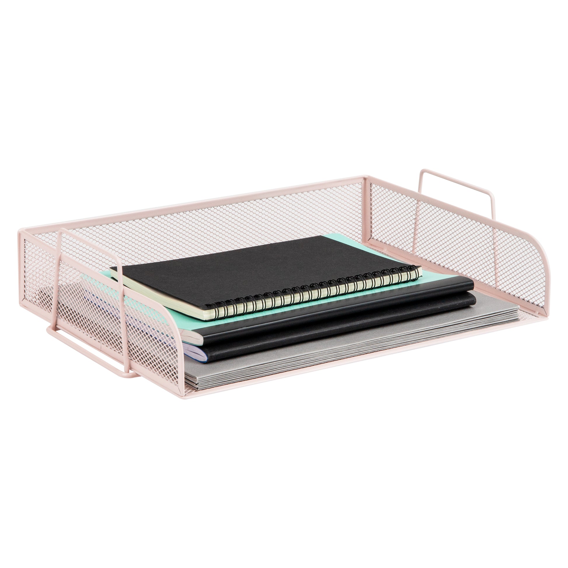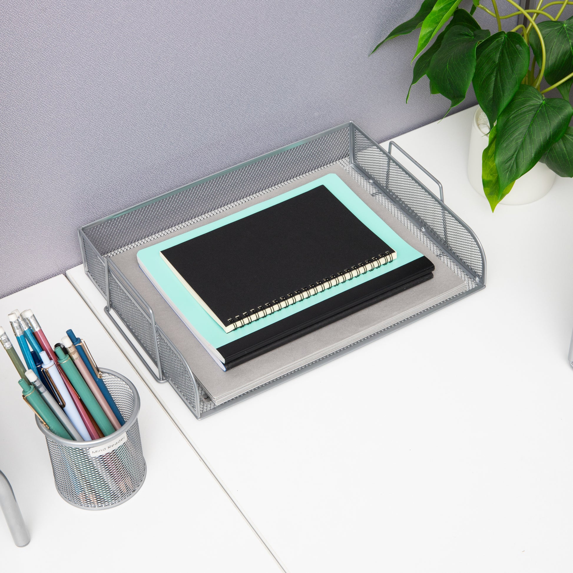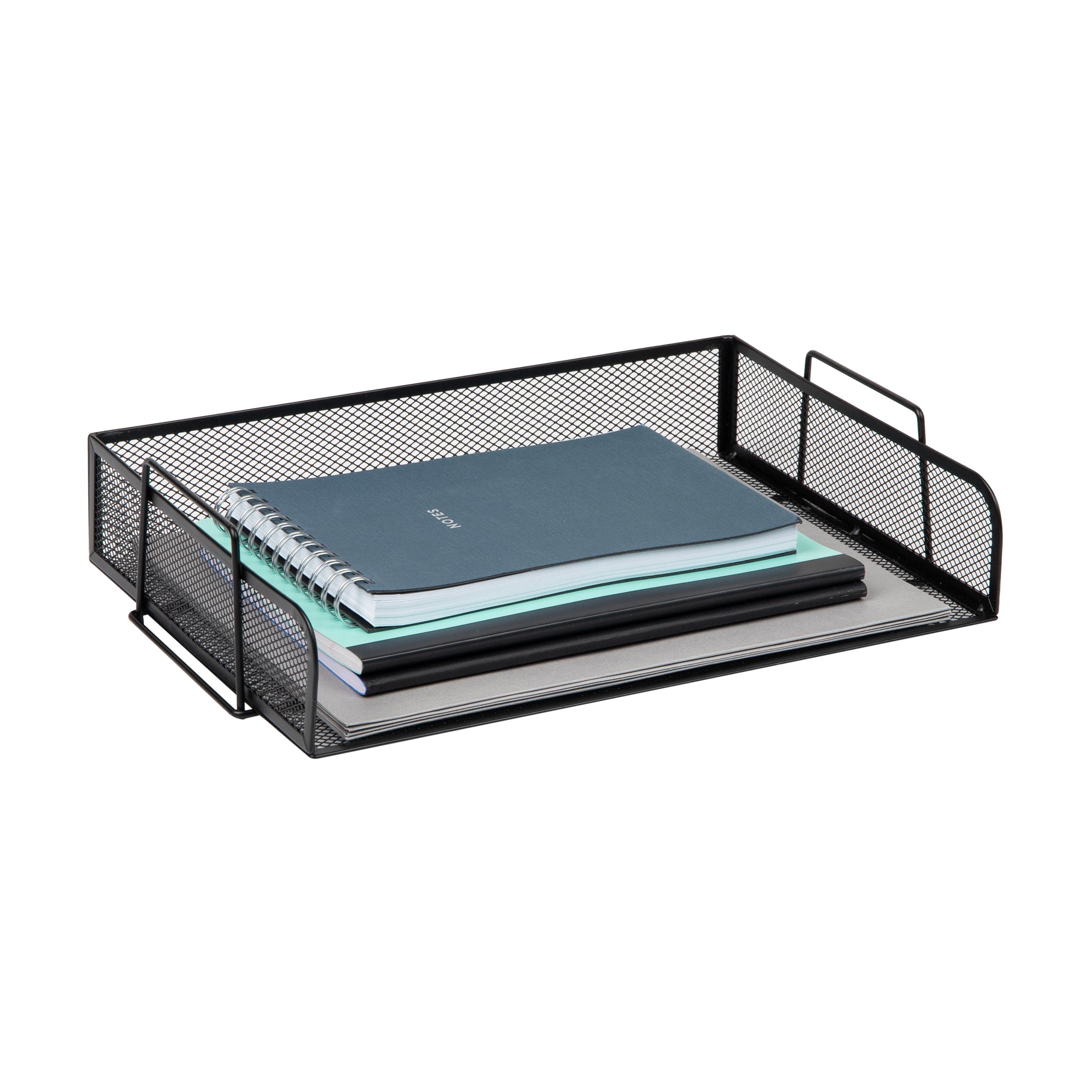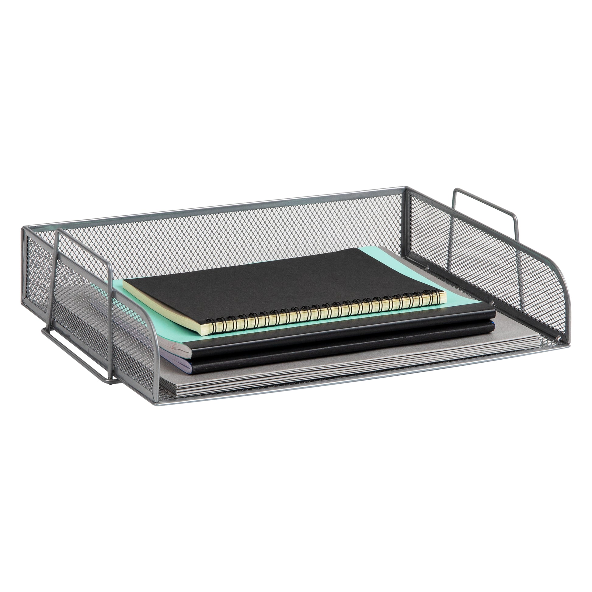 Crafted from sturdy mesh metal, this organizer is built to withstand daily use. Its neutral color blends effortlessly with any decor. For a coordinated look, pair it with other pieces from the Network Collection. This four-tier organizer makes a fantastic gift for colleagues, graduates, new homeowners, or anyone seeking a stylish and practical solution to declutter their workspace.