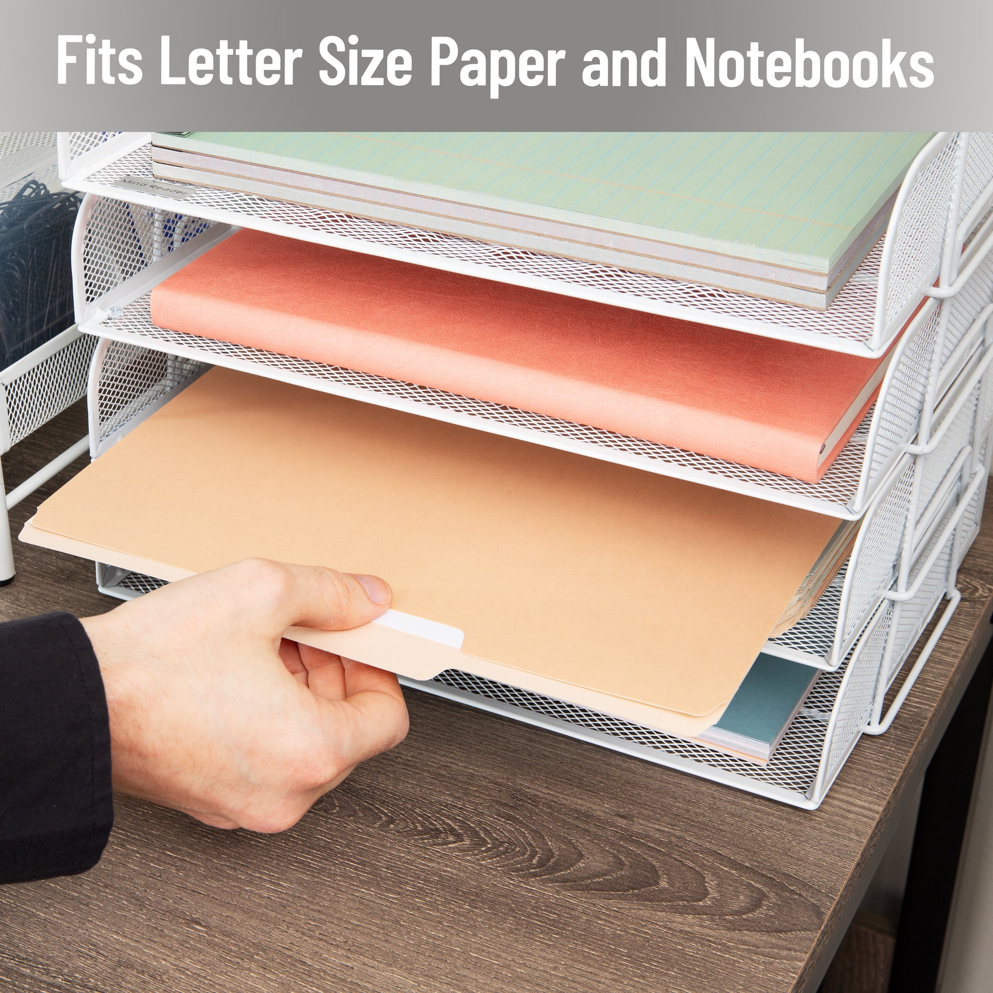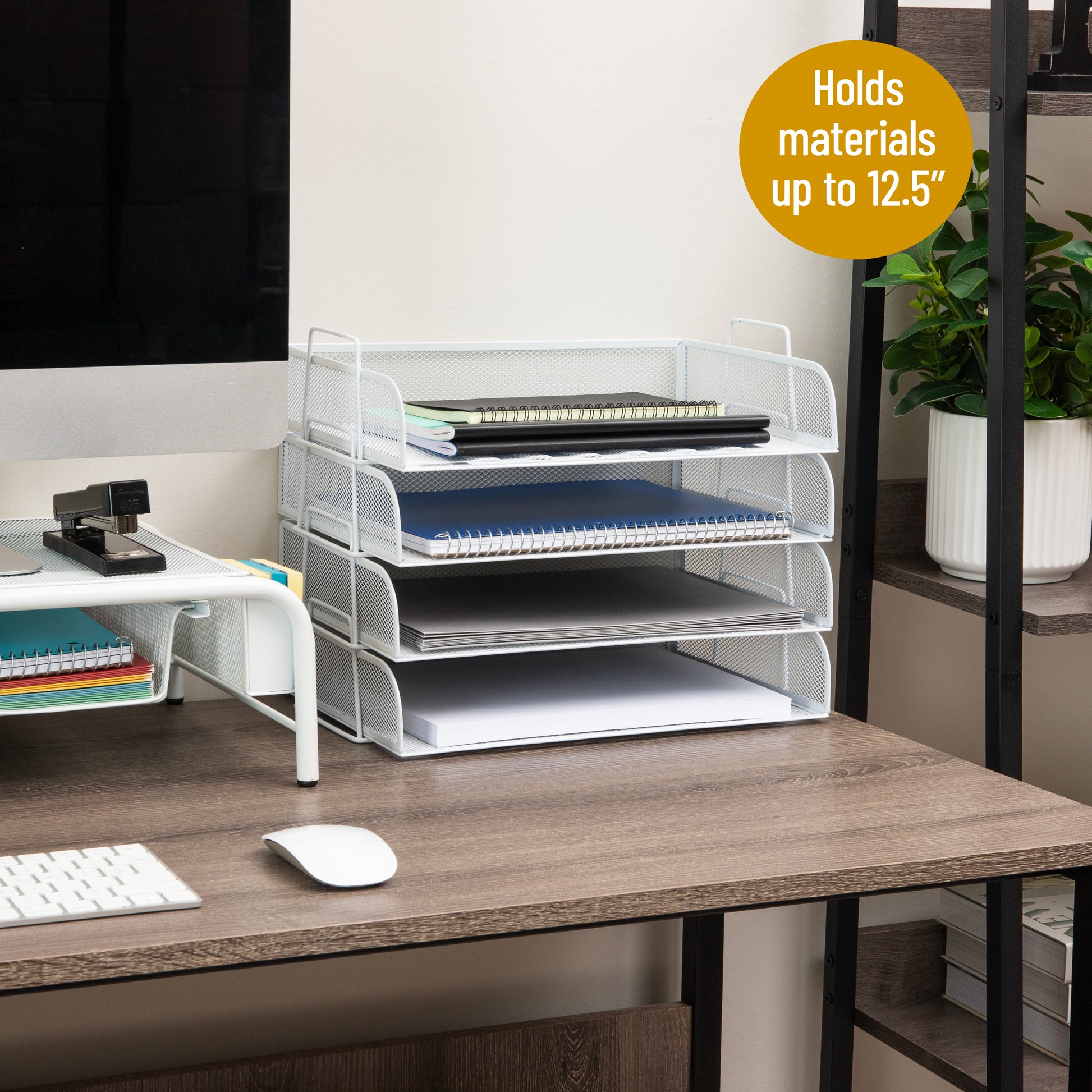 Enhance your productivity with this four-tier, stackable desktop organizer. Designed for letter-size papers, folders, and files, it keeps your essential documents within easy reach. The individual pieces can be stacked for convenient access, used separately for diverse storage needs, or placed in different locations, such as your office and home. Each piece is lightweight, portable, and easy to handle, with a combined weight of 3.3 pounds (1.5 kg).