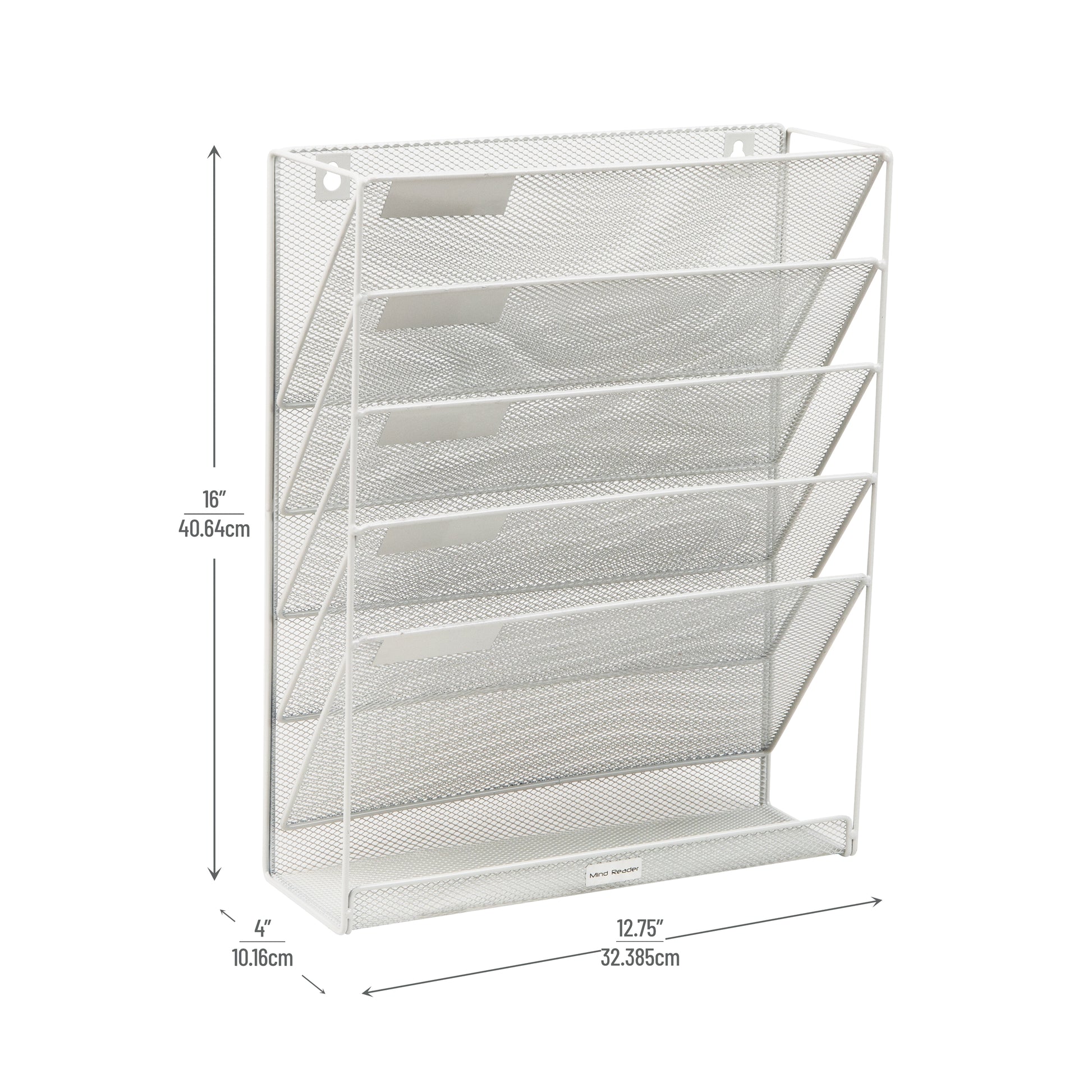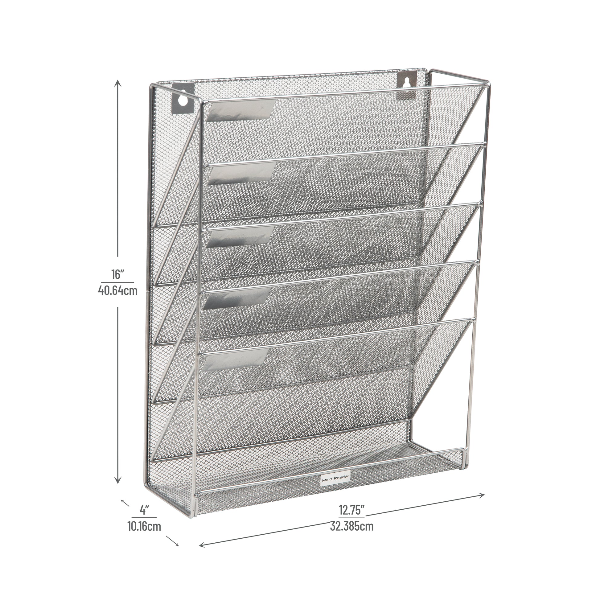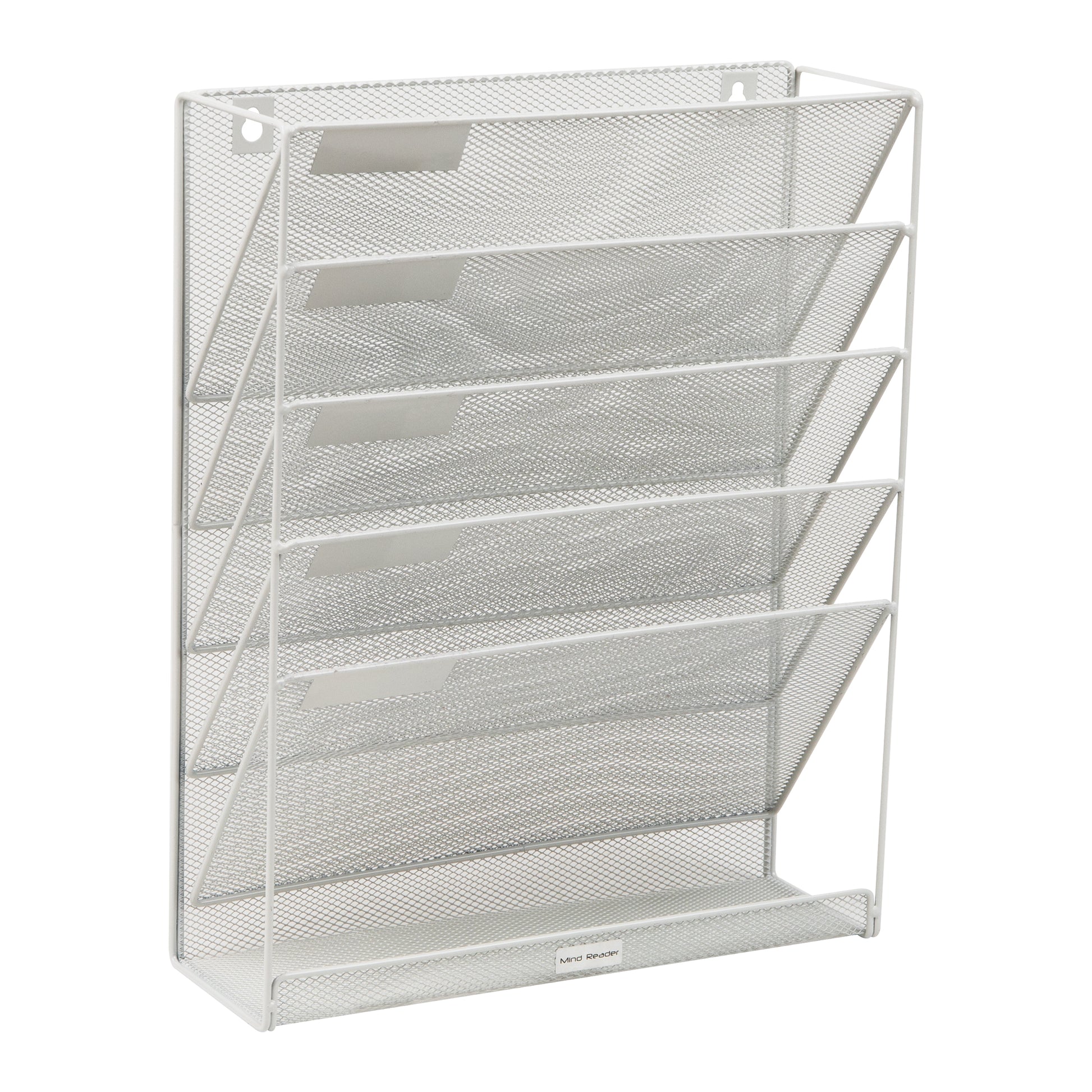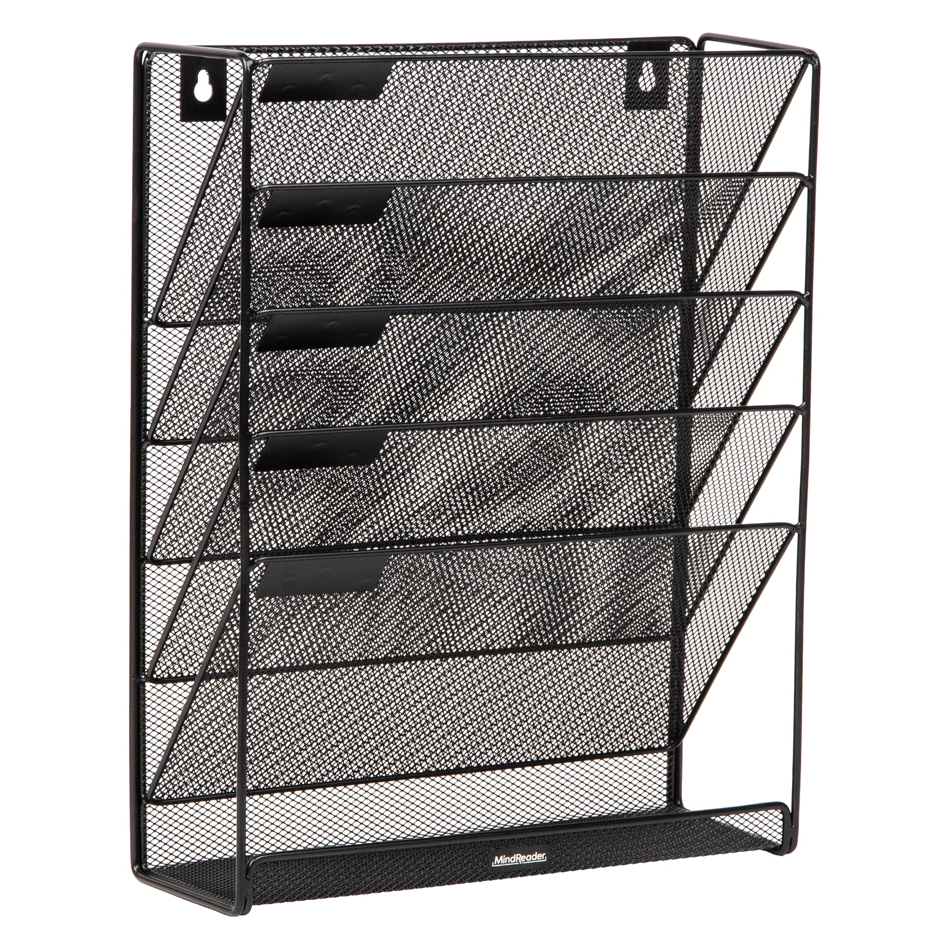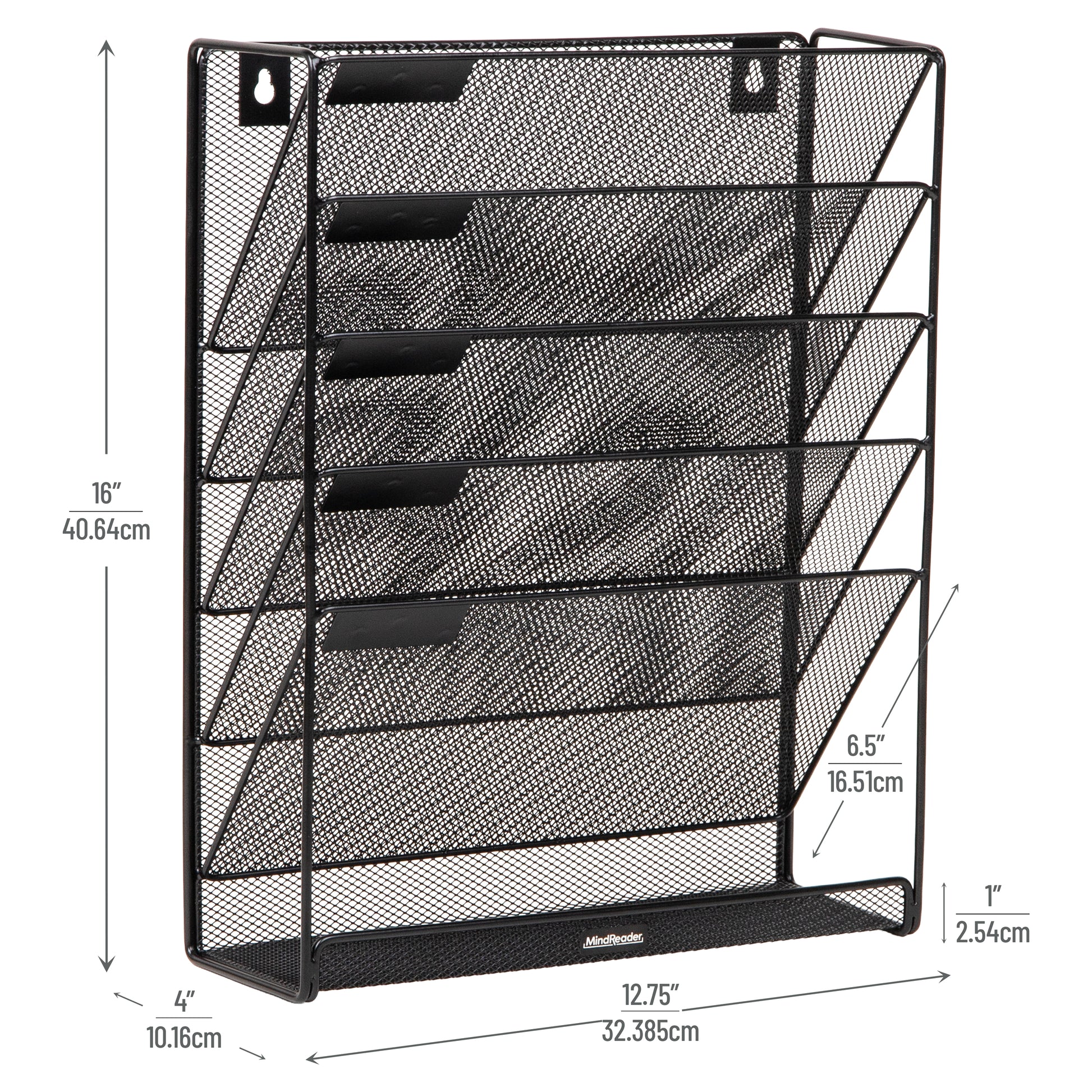 Mind Reader 5-Tier Vertical File Storage, Desktop Organizer, Wall Mount, Office, Metal Mesh, 12.75"L x 4"W x 16"H