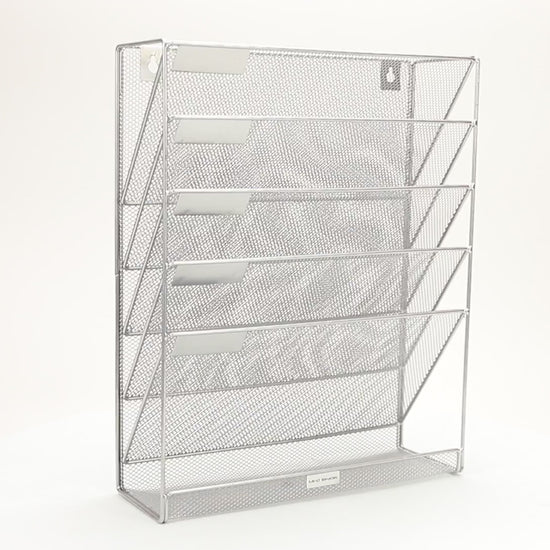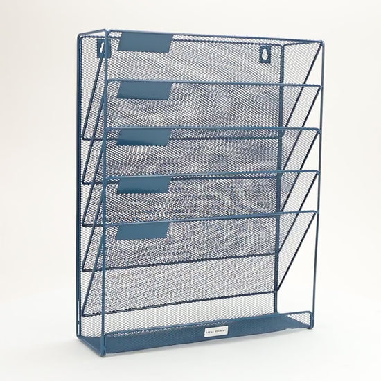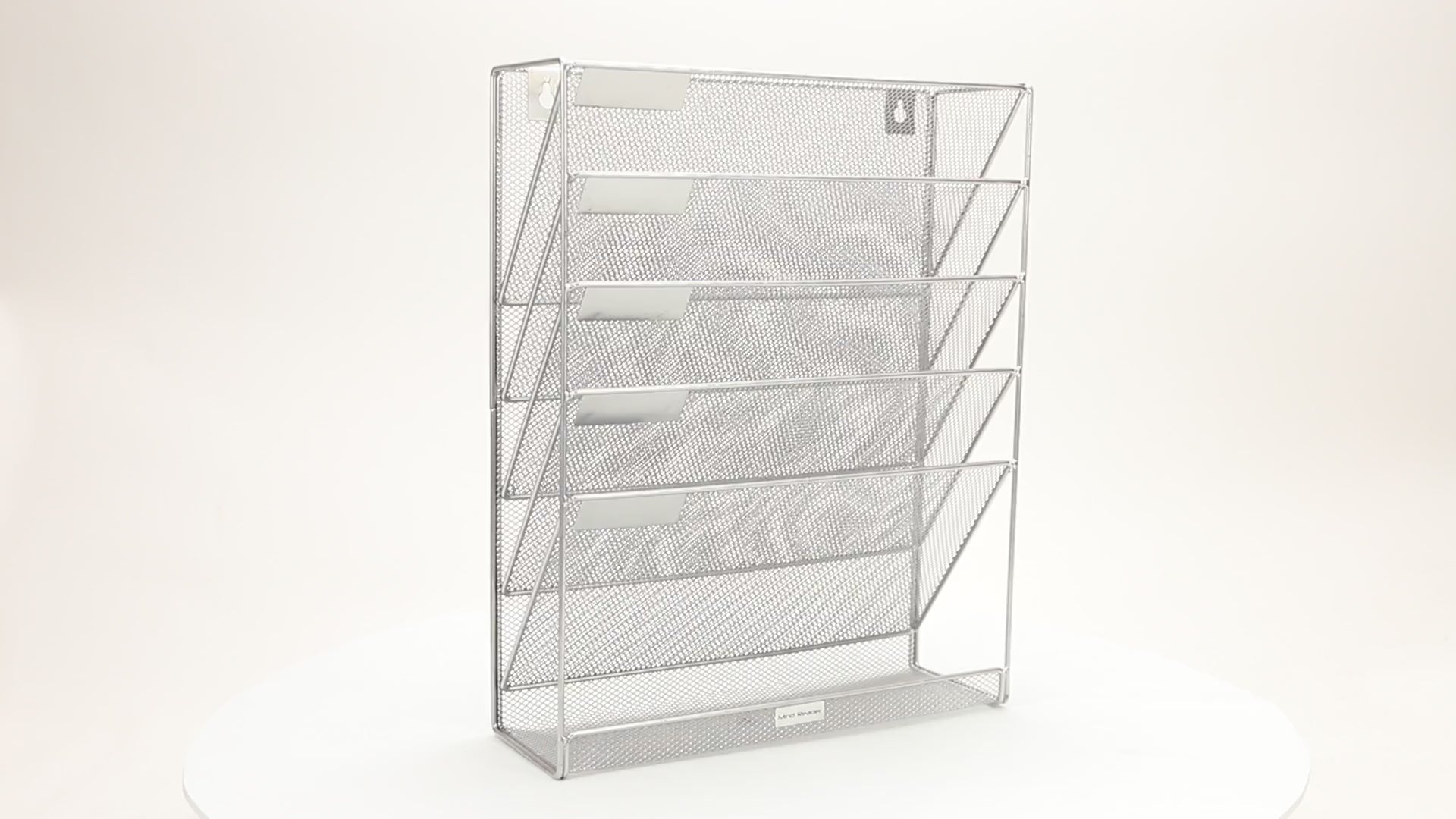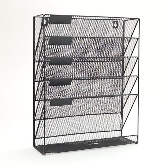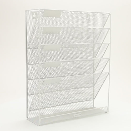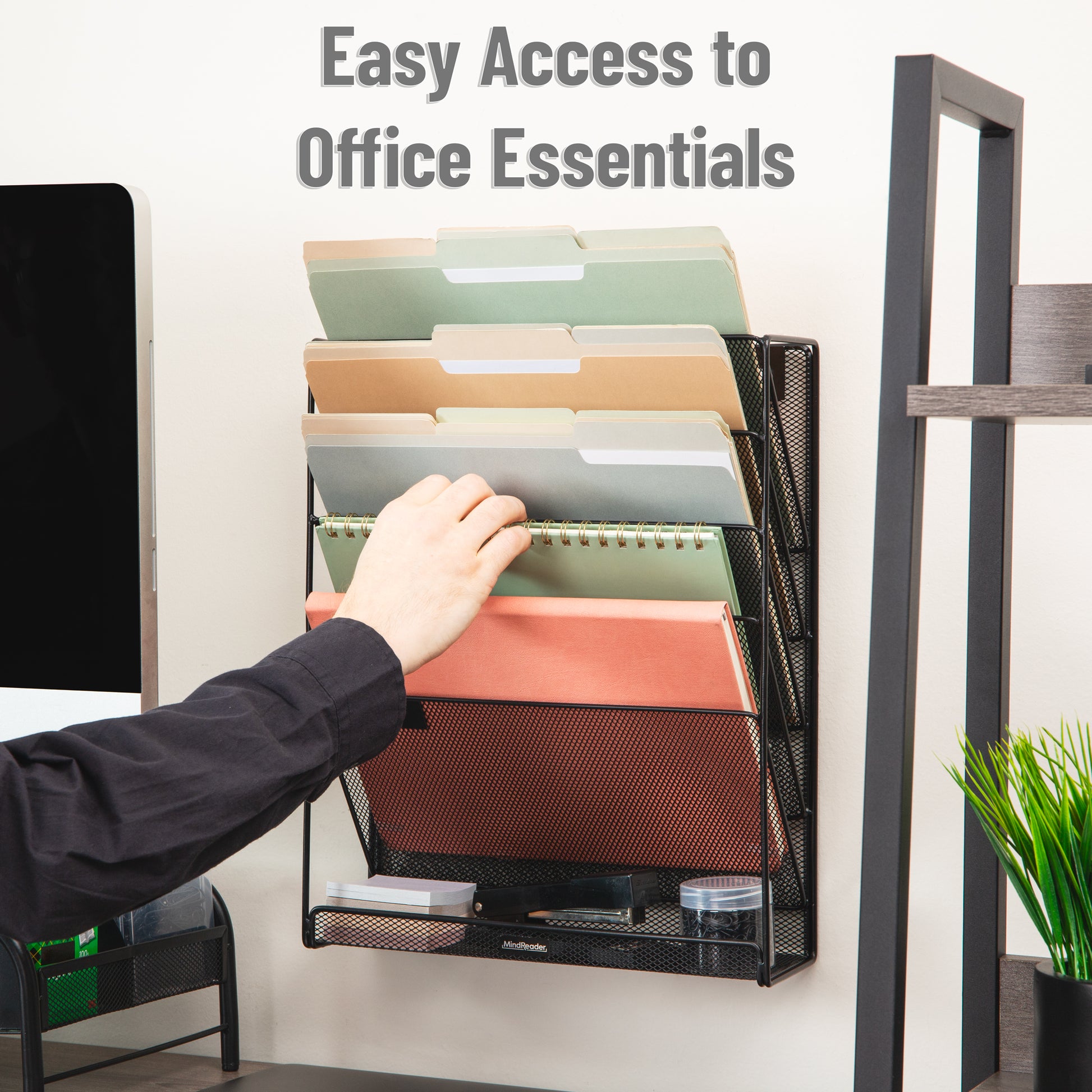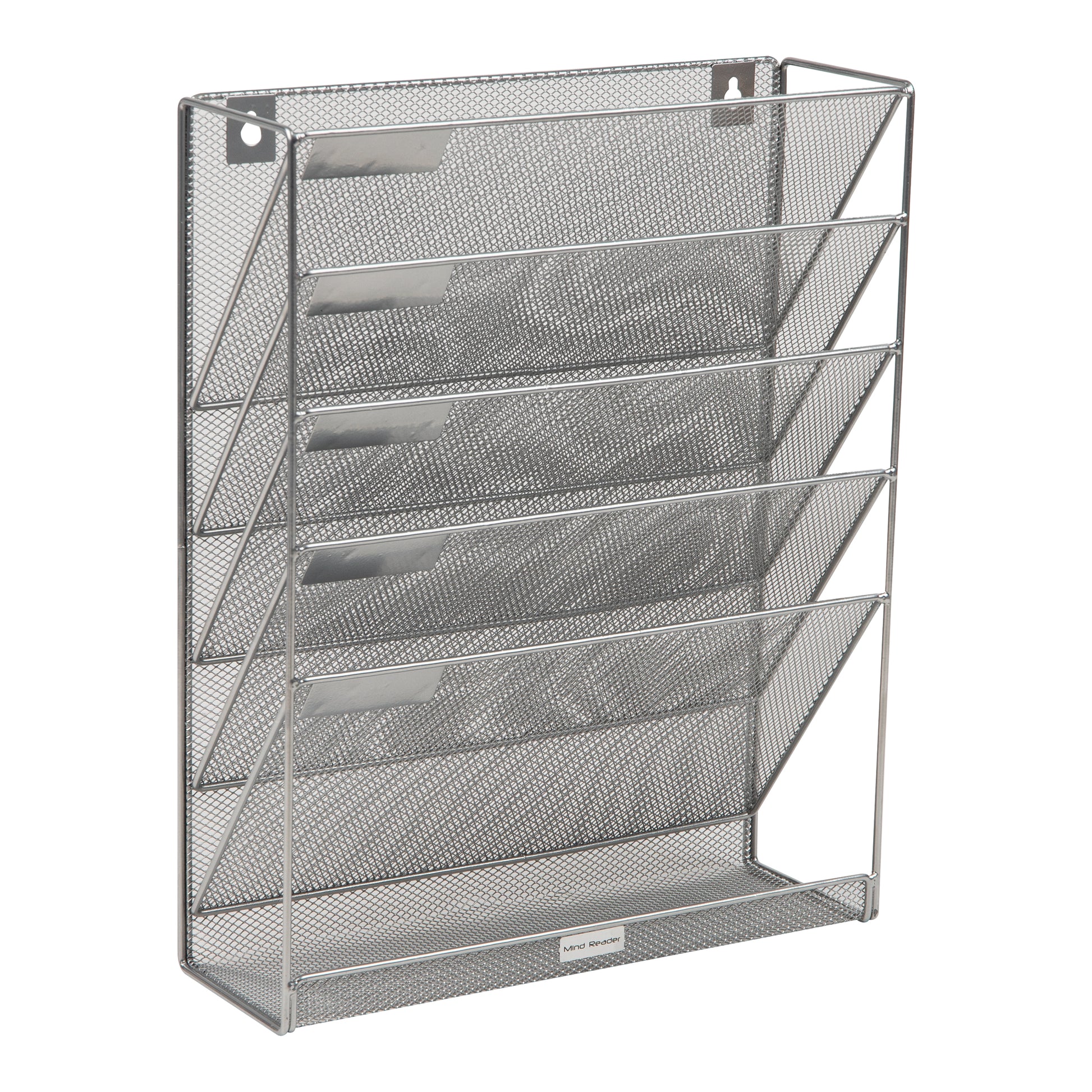 Mind Reader 5-Tier Vertical File Storage, Desktop Organizer, Wall Mount, Office, Metal Mesh, 12.75"L x 4"W x 16"H