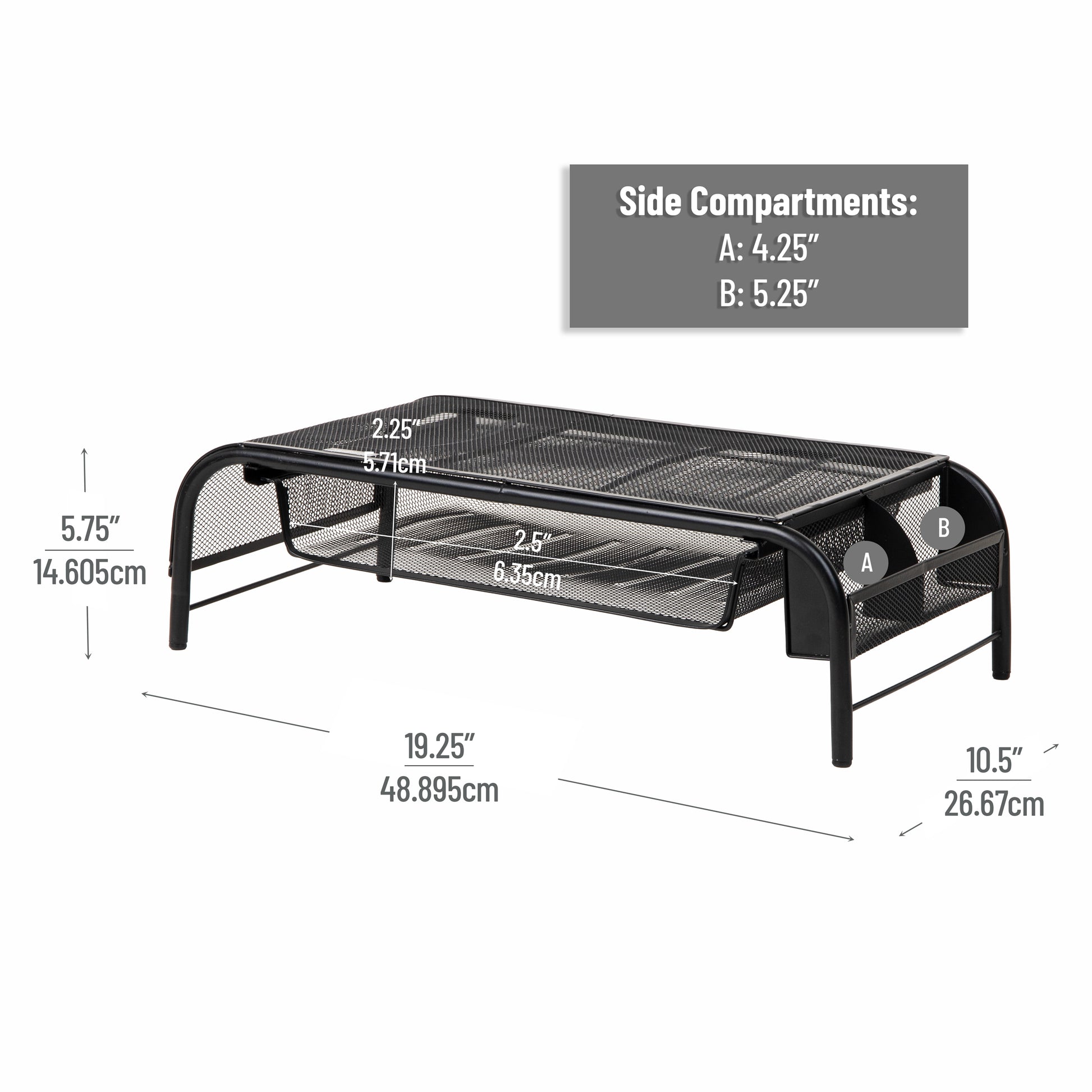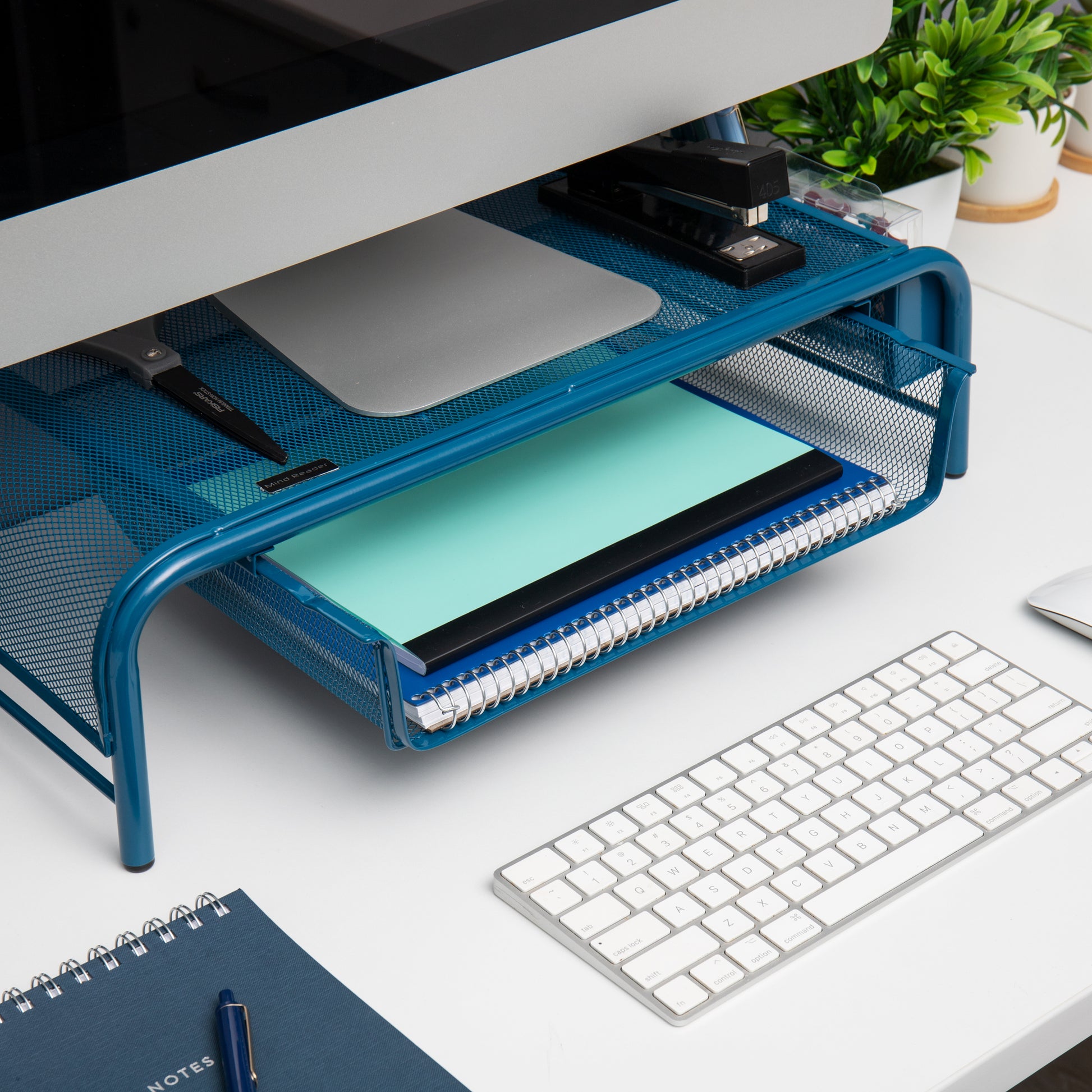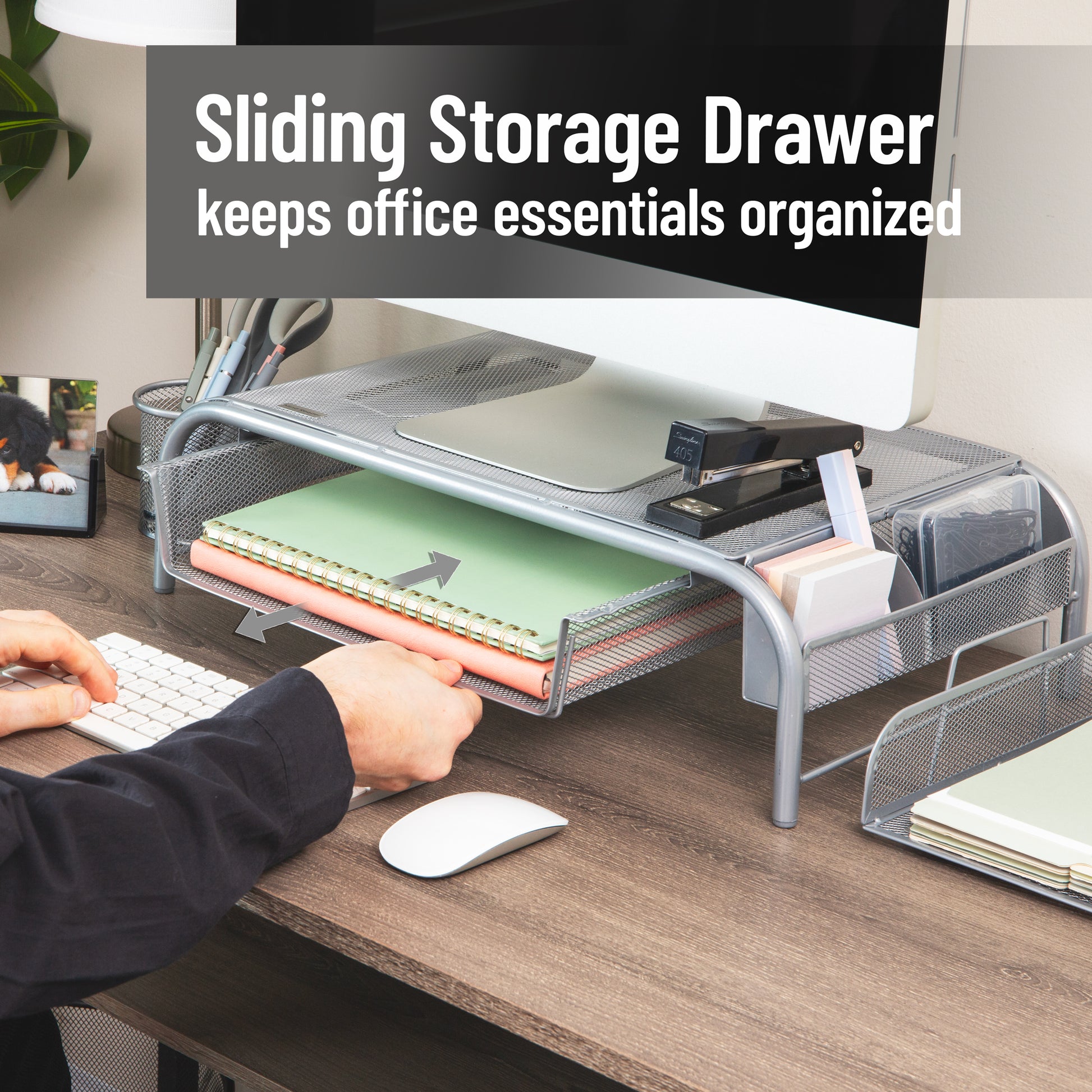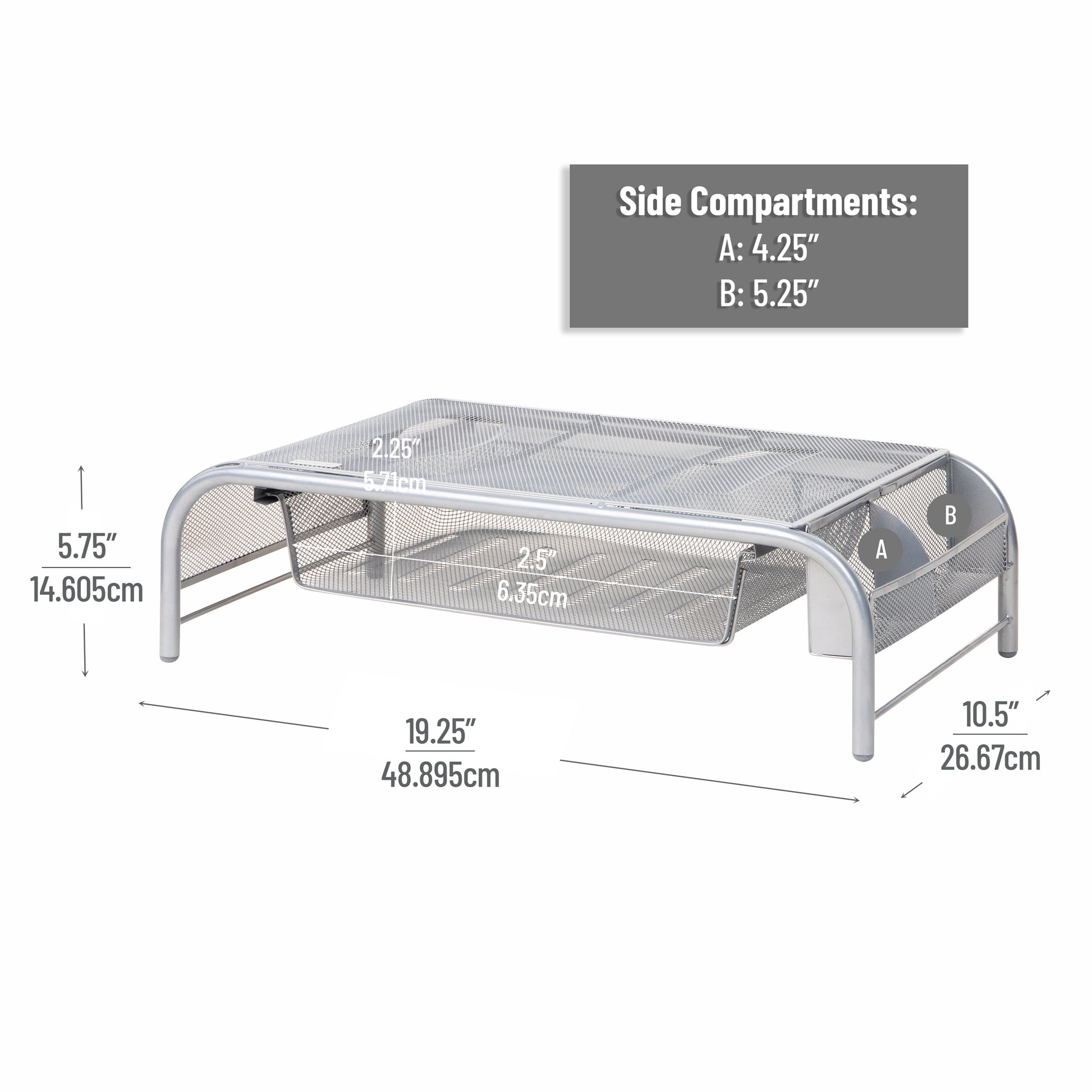 Mind Reader Monitor Stand, Ventilated Laptop Riser, Paper Tray, Storage, Office, Metal Mesh