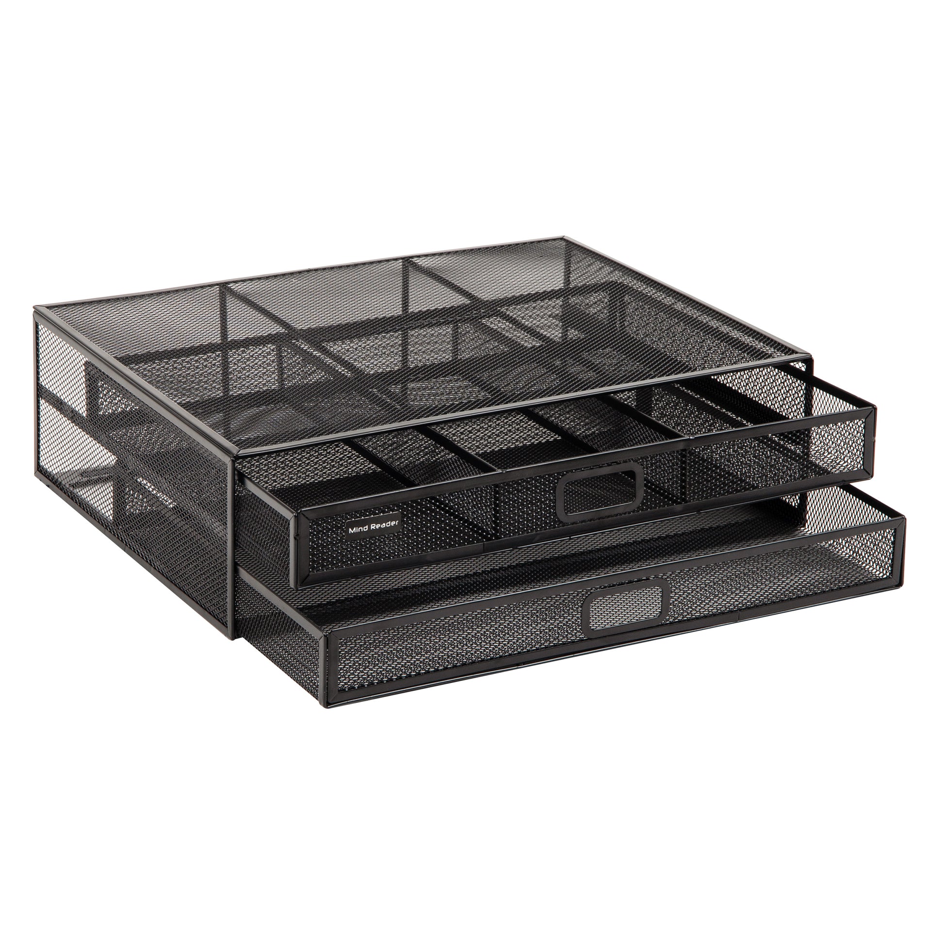 Maximize your organization capabilities with two tiers of drawers. The top tier is ideal for storing files, folders, and other important documents, while one of the pull-out drawers features three separate compartments for storing office essentials like pens, pencils, and paper clips. The see-through design lets you quickly locate what you need.