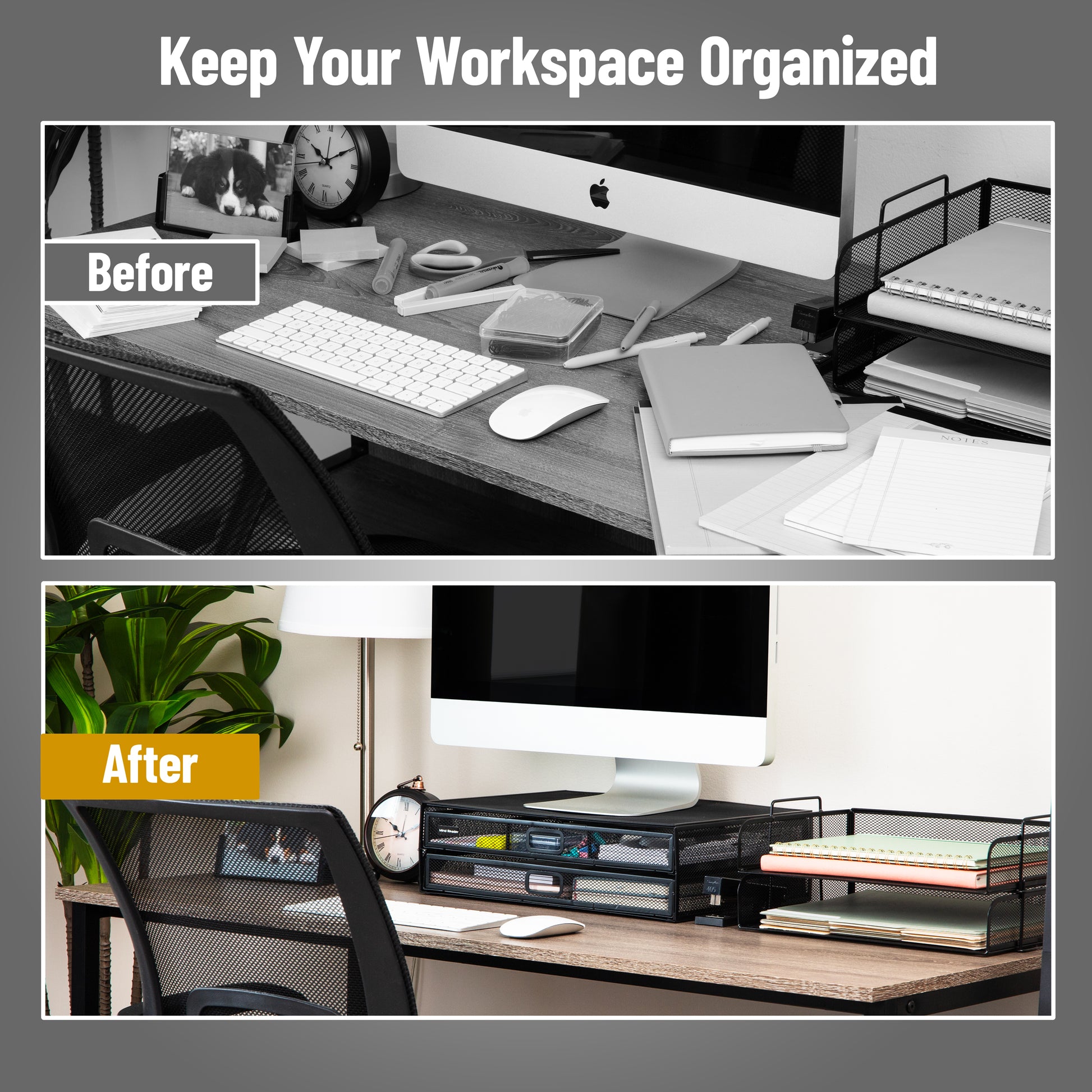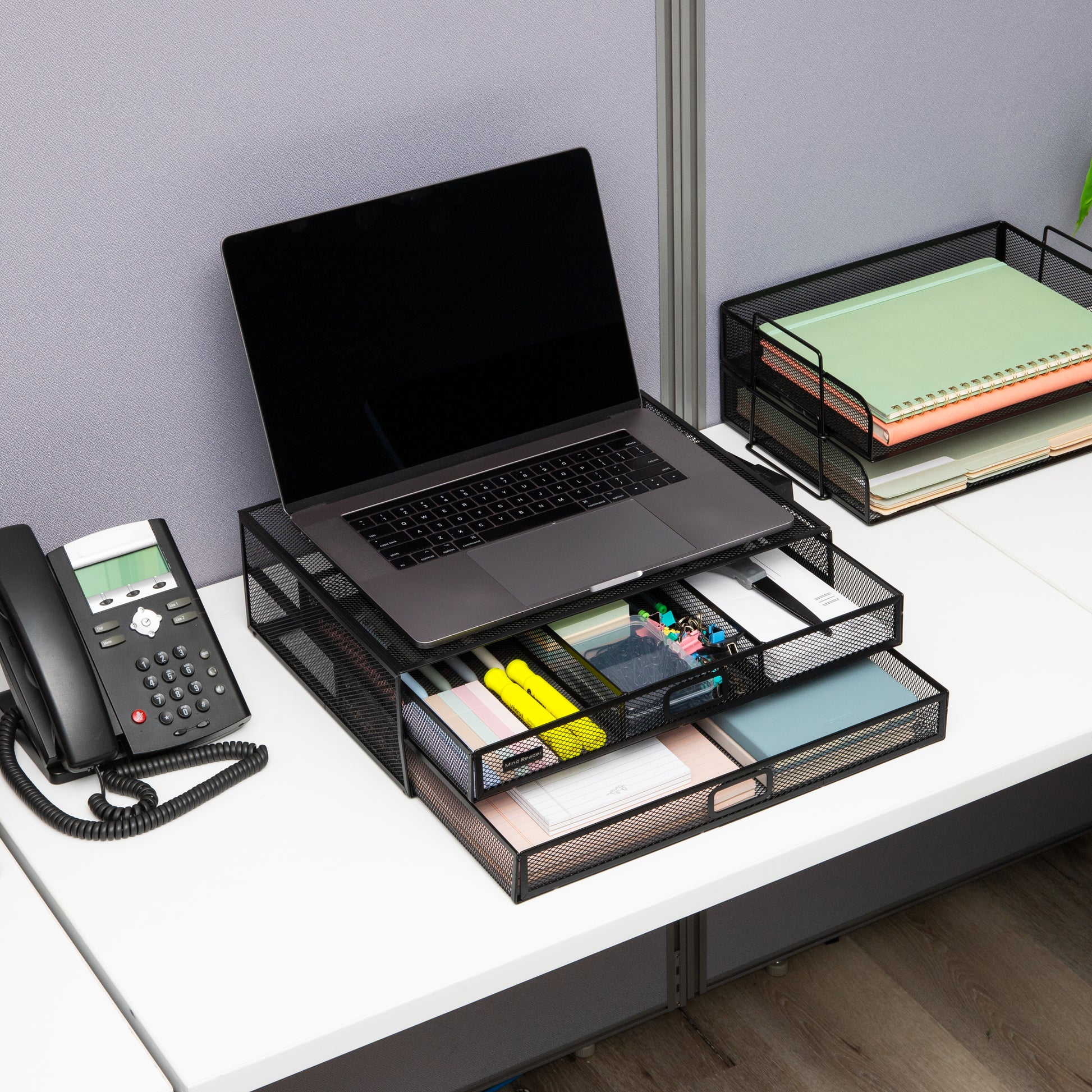 Two-Tier Mesh Desktop Organizer and Monitor Stand