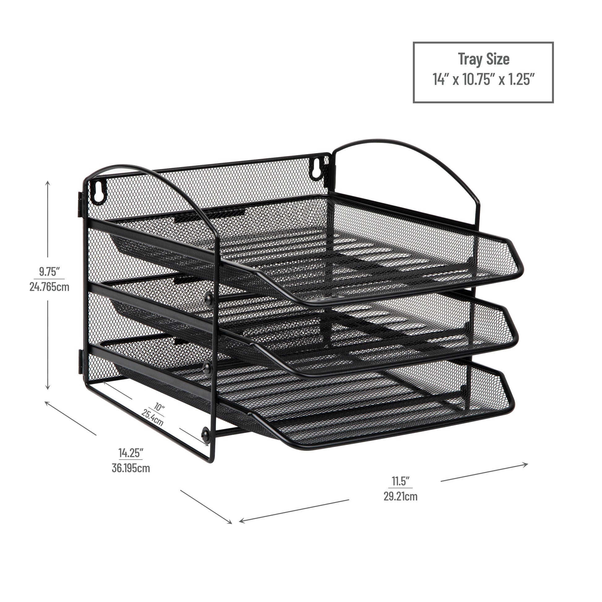 3-Tier Dimensions: Store standard-sized documents with ease in this 11.5" long x 14.25" wide x 9.75" inches tall (29.21 x 36.2 x 24.13 centimeters) multi-tiered desk organizer