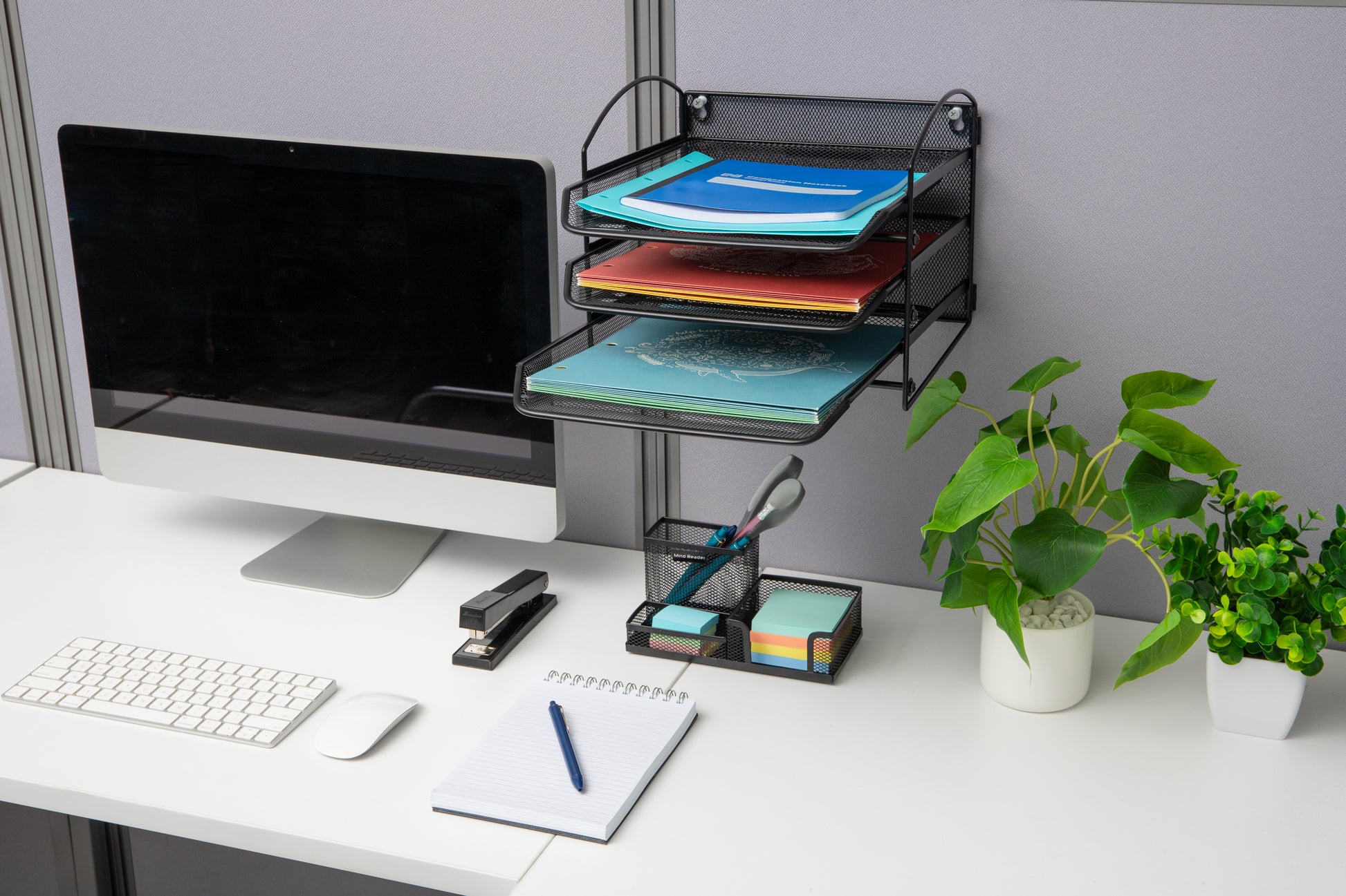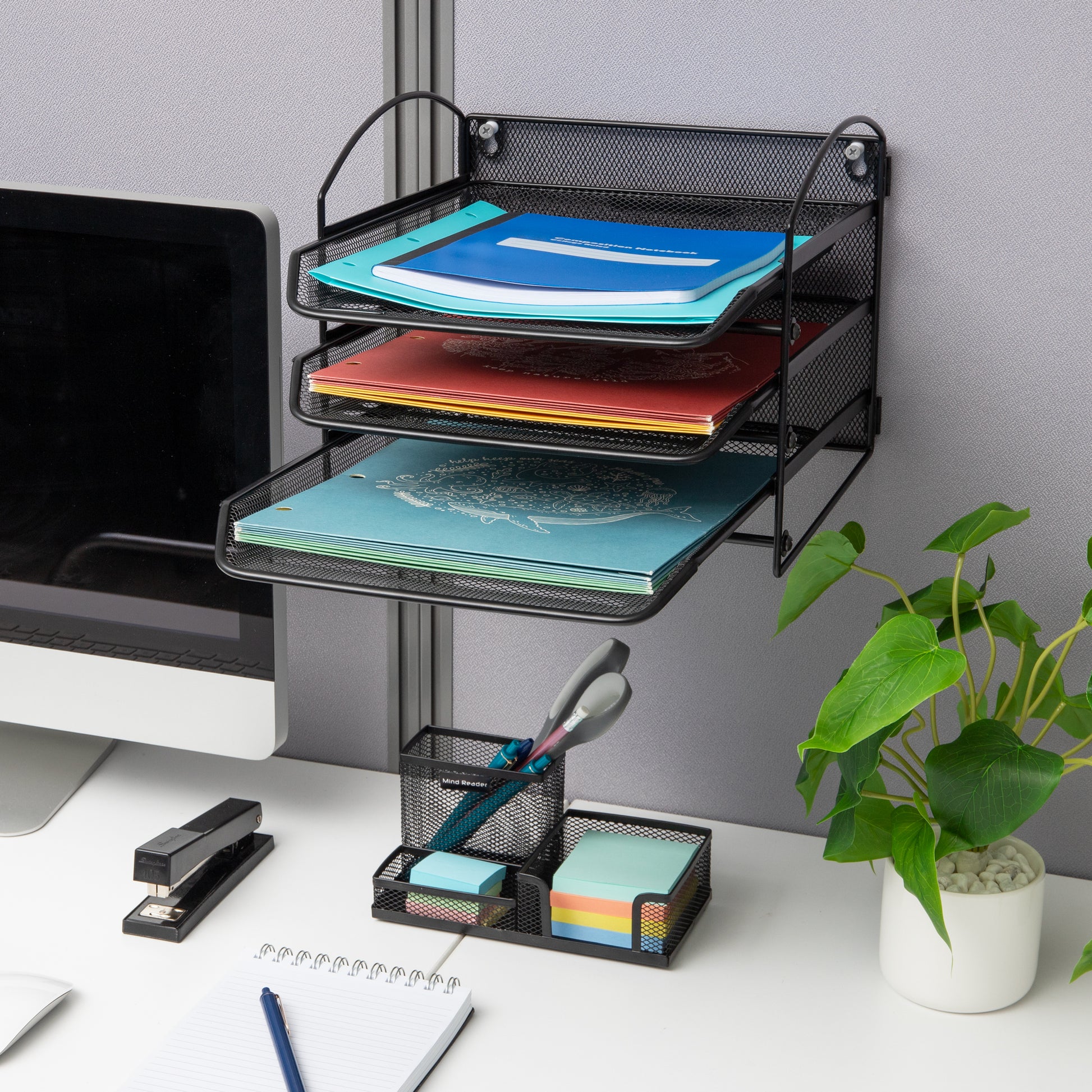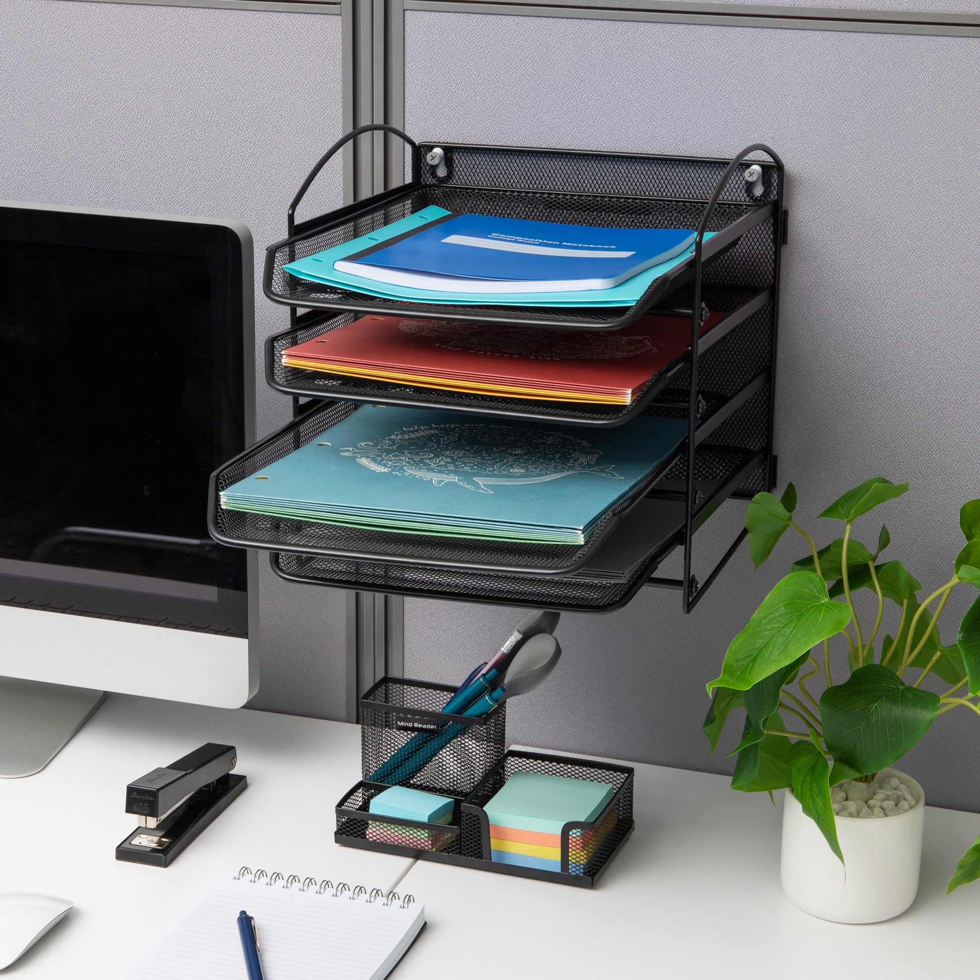 Accessible: The modern, metal mesh design of this desktop organizer lets you see files and folders so you can easily retrieve them