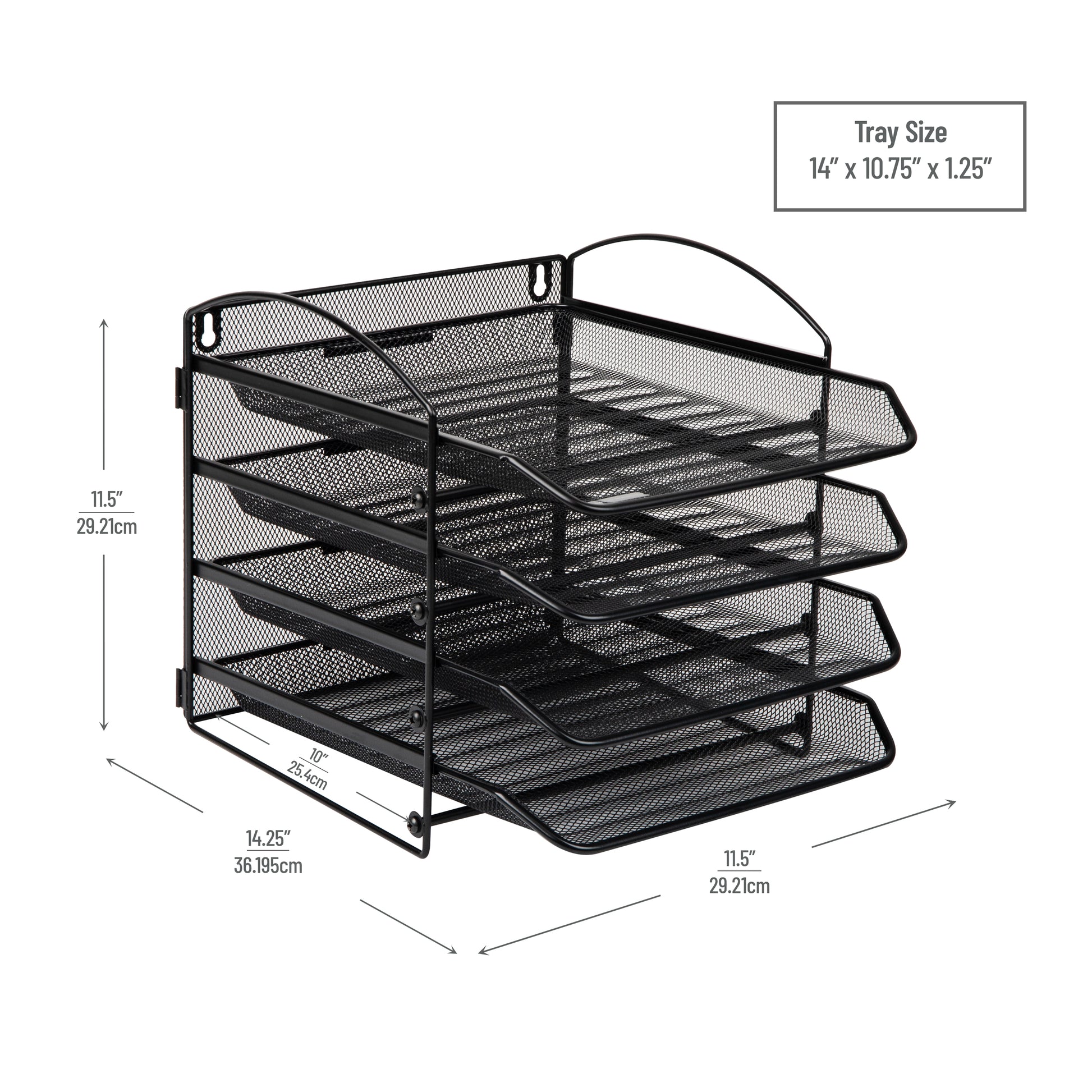 4-Tier Dimensions: Store standard-sized documents with ease in this 11.5" long x 14.25" wide x 11.5" inches tall (29.21 x 36.2 x 29.21 centimeters) multi-tiered desk organizer
