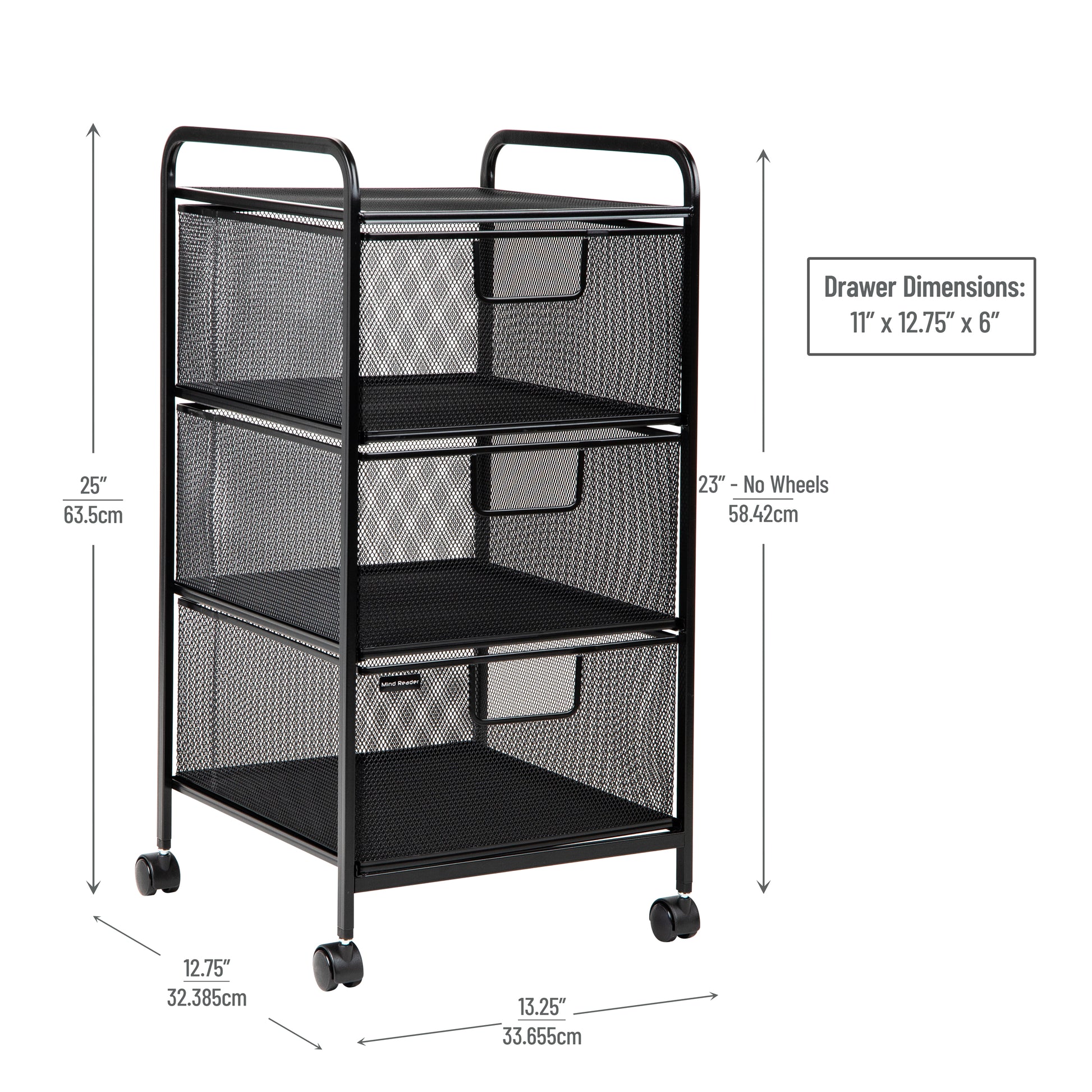 Mind Reader Rolling Storage Cart with Removable Drawers, Multi-Purpose Organizer for Office, Metal Mesh, Black