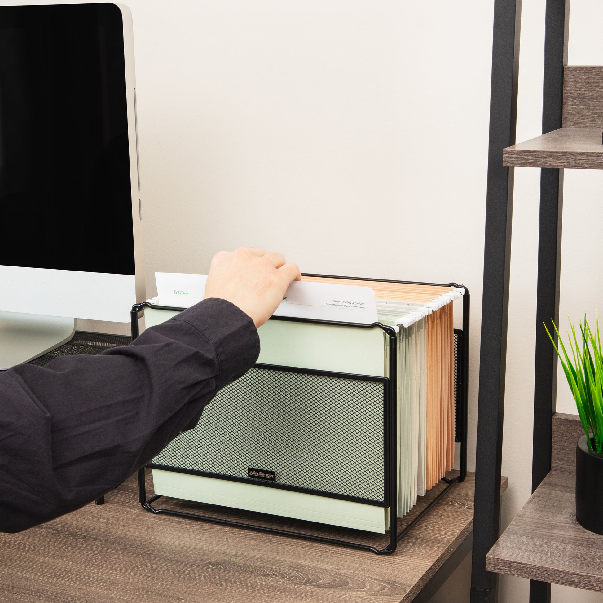 Mind Reader Hanging File Folder Organizer, Desktop Organizer, Storage, Office, Metal Mesh, 13"L x 9.75"W x 10.25"H