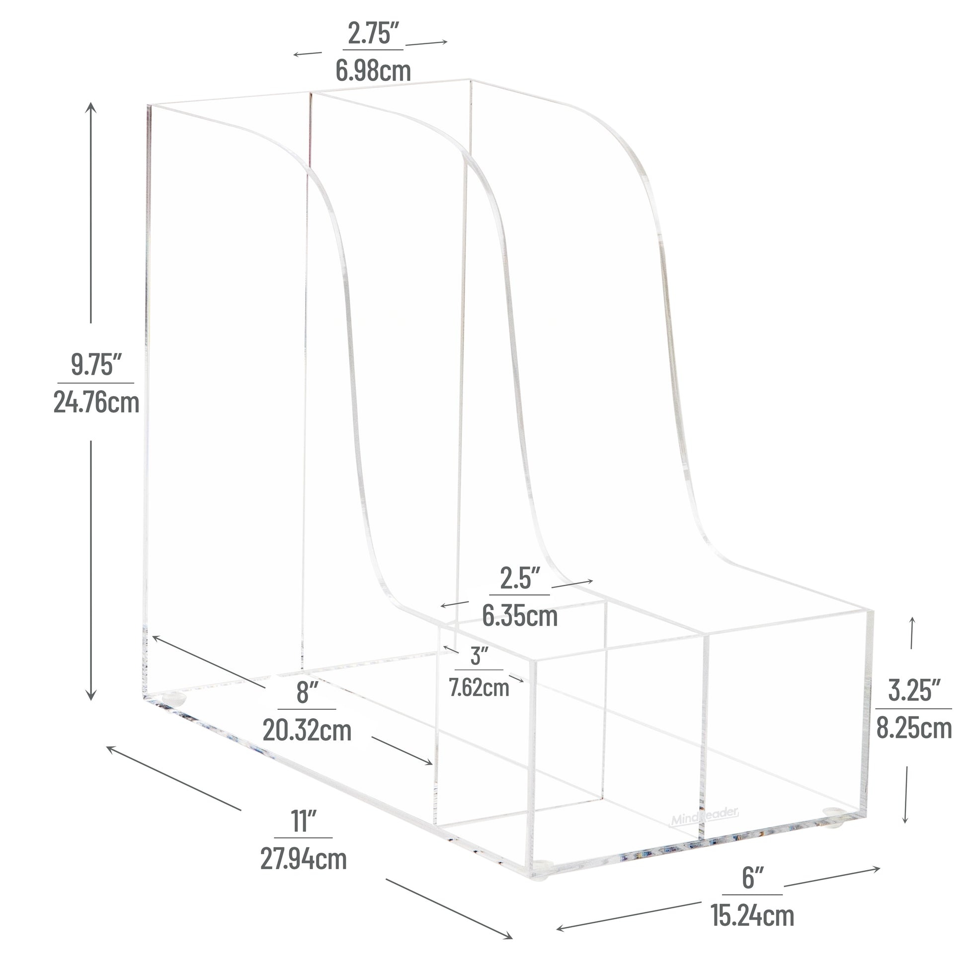 Mind Reader Vertical File Storage, Desktop Organizer, Magazine Holder, Office, Acrylic, 6"L x 11"W x 9.75"H, Clear
